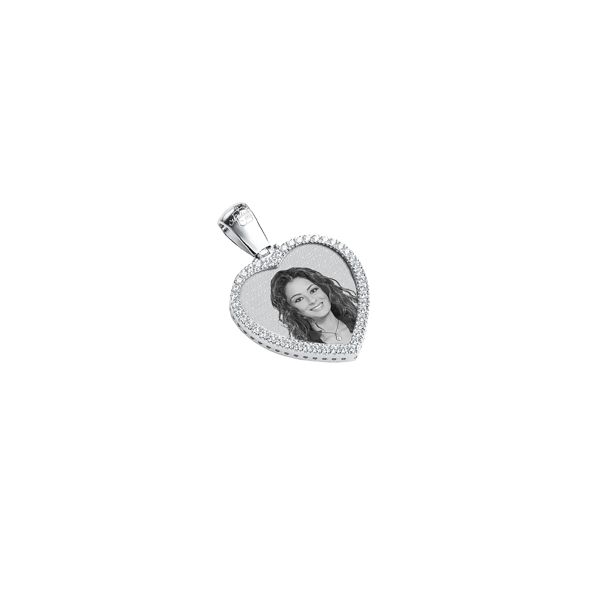 Questa medaglia in argento, dalla forma a cuore e impreziosita da zirconi scintillanti, è un gioiello che racchiude l’amore e la memoria in ogni suo dettaglio. La foto incisa al suo interno rende il ricordo ancora più intimo e personale, creando un legame profondo e speciale. La brillantezza degli zirconi e la lucentezza dell'argento rendono questo cuore un simbolo di affetto eterno. Un tesoro da custodire, che parla direttamente al cuore.