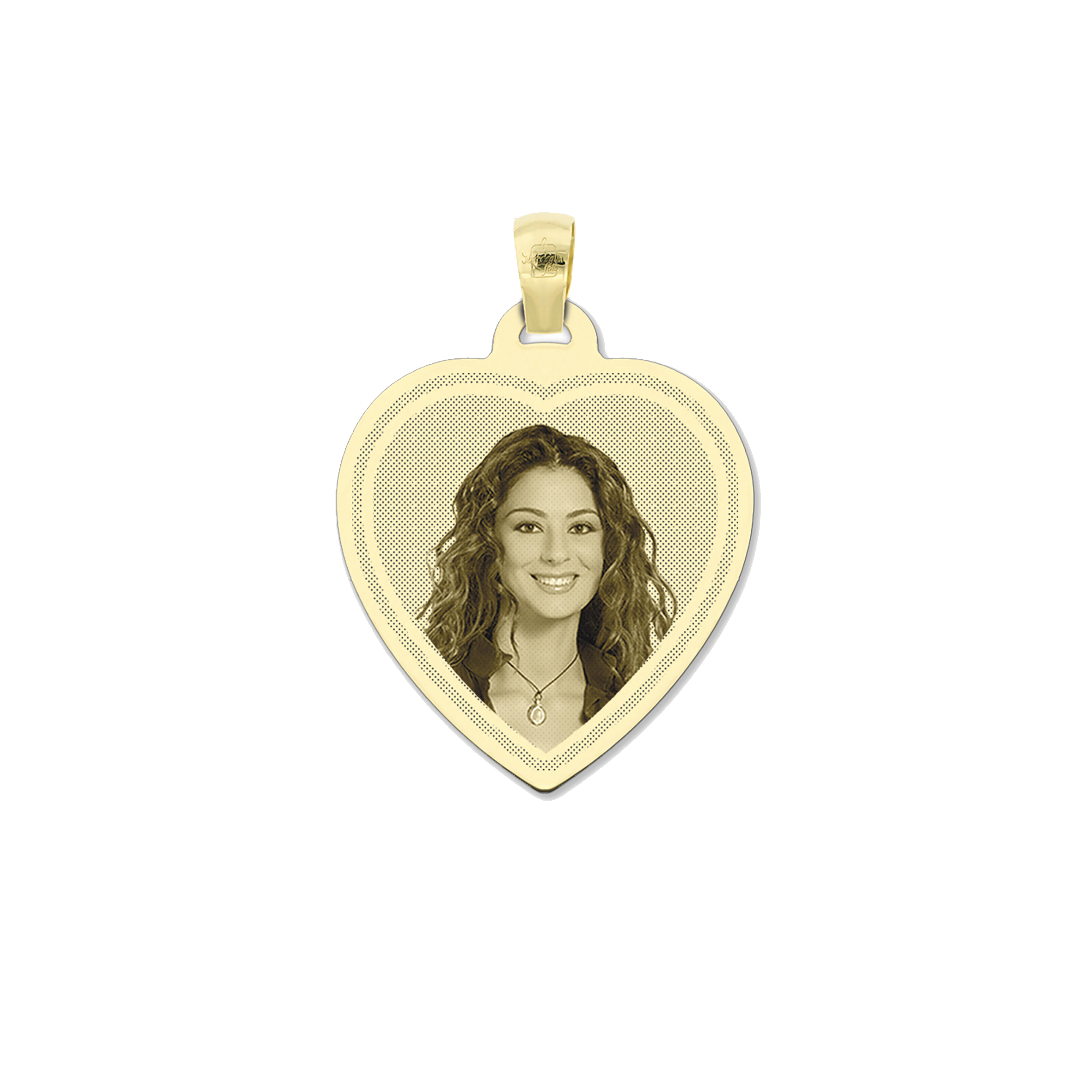 Medaglia Cuore in Oro 9kt - Cornice Incisa