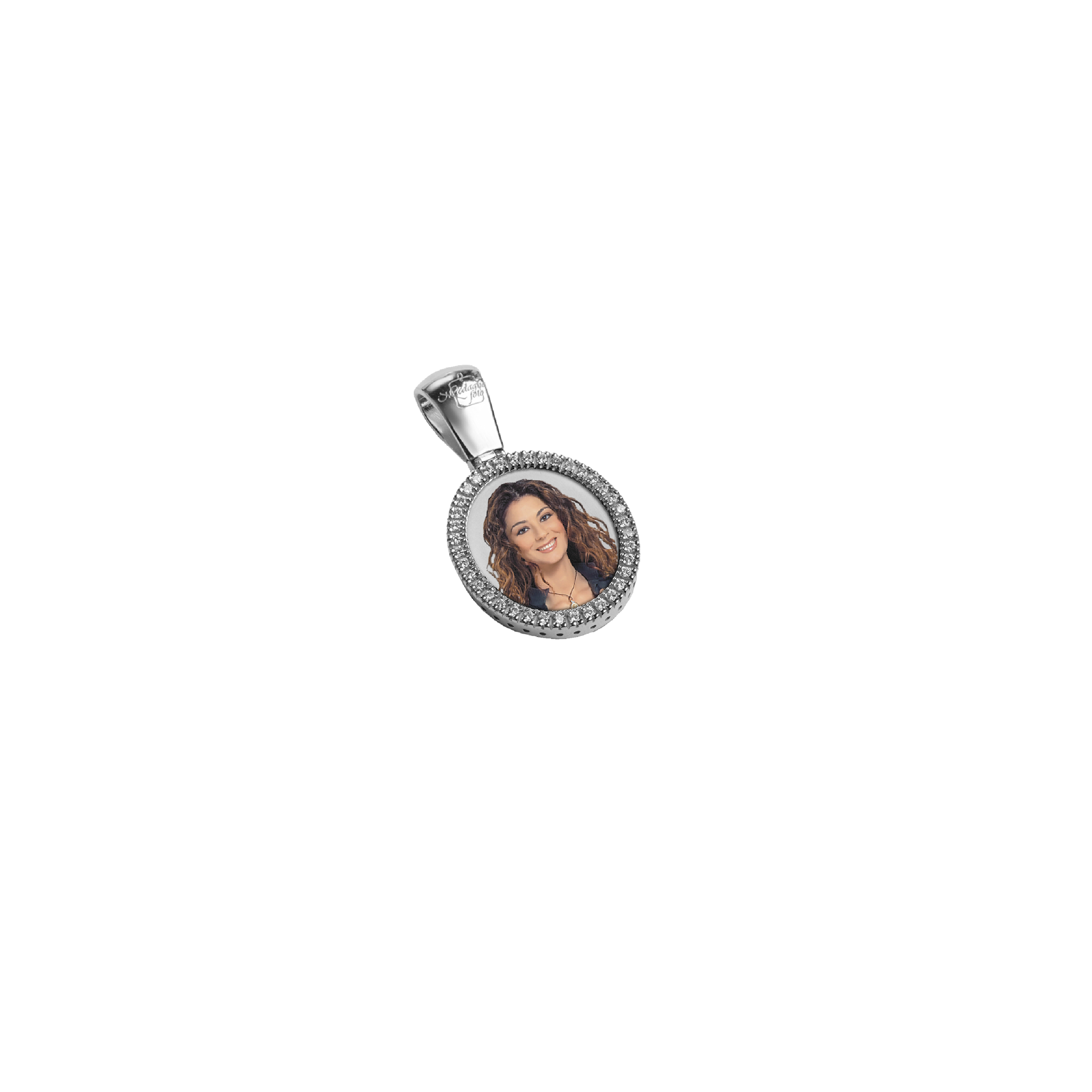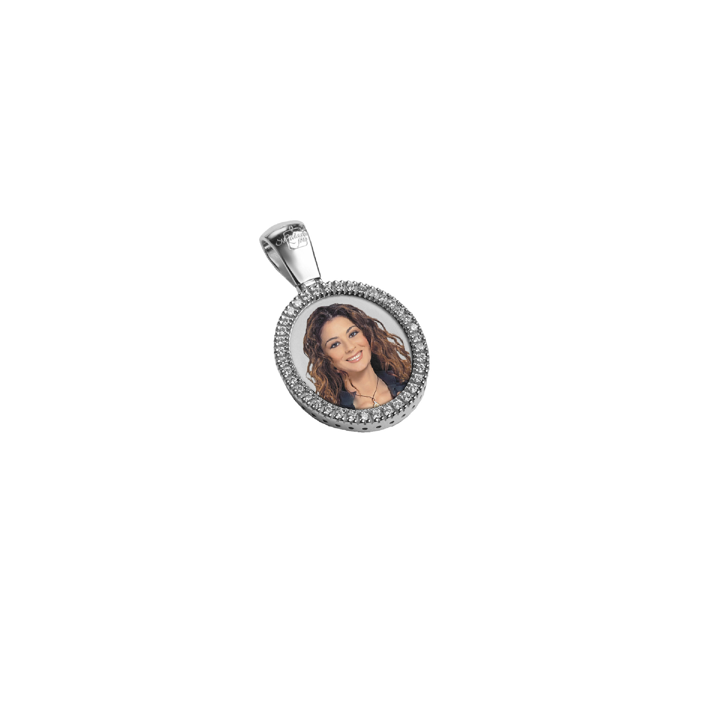 Medaglia Ovale in Argento - Cornice con Zirconi