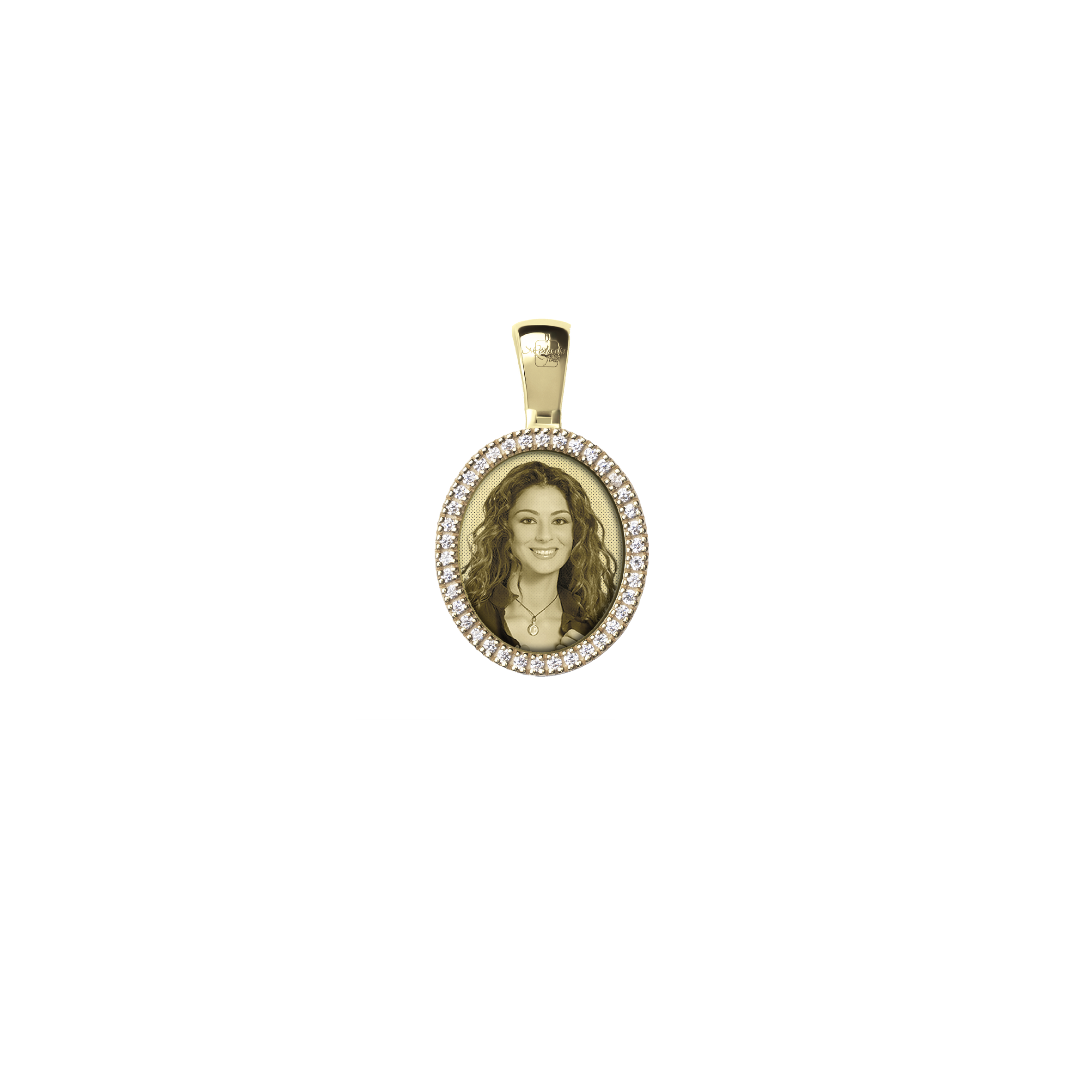 Questa medaglia in oro 9kt, dalla delicata forma ovale e arricchita da zirconi brillanti, cattura l’essenza di un ricordo prezioso. La foto incisa al suo interno rende ogni momento ancora più unico e personale, trasformando il gioiello in un tesoro senza tempo. La lucentezza dell'oro e il riflesso degli zirconi creano un equilibrio perfetto di eleganza e sentimenti. Un simbolo di affetto da portare sempre con sé, che illumina il cuore.