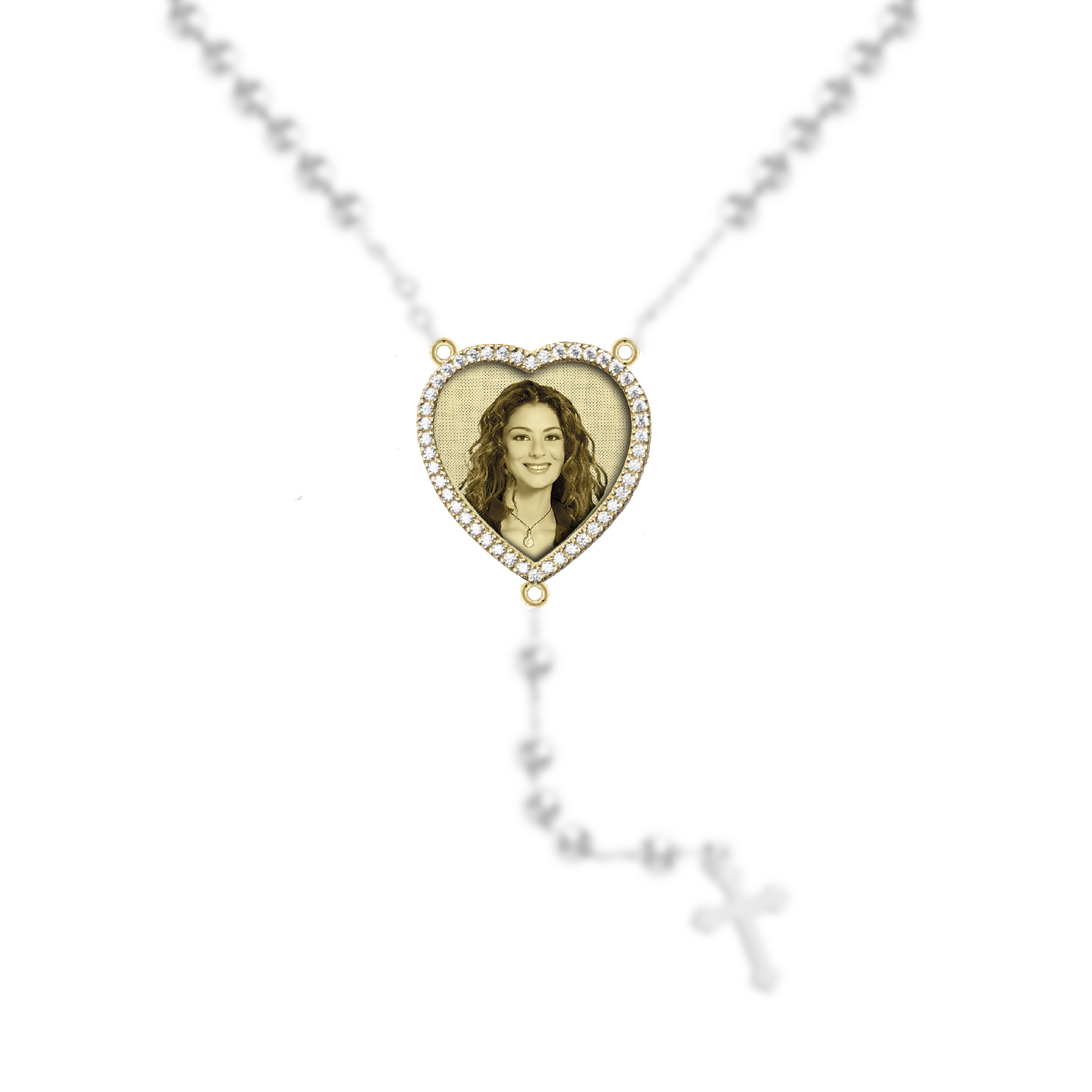 Medaglia Cuore per Rosario in Argento - Cornice con Zirconi