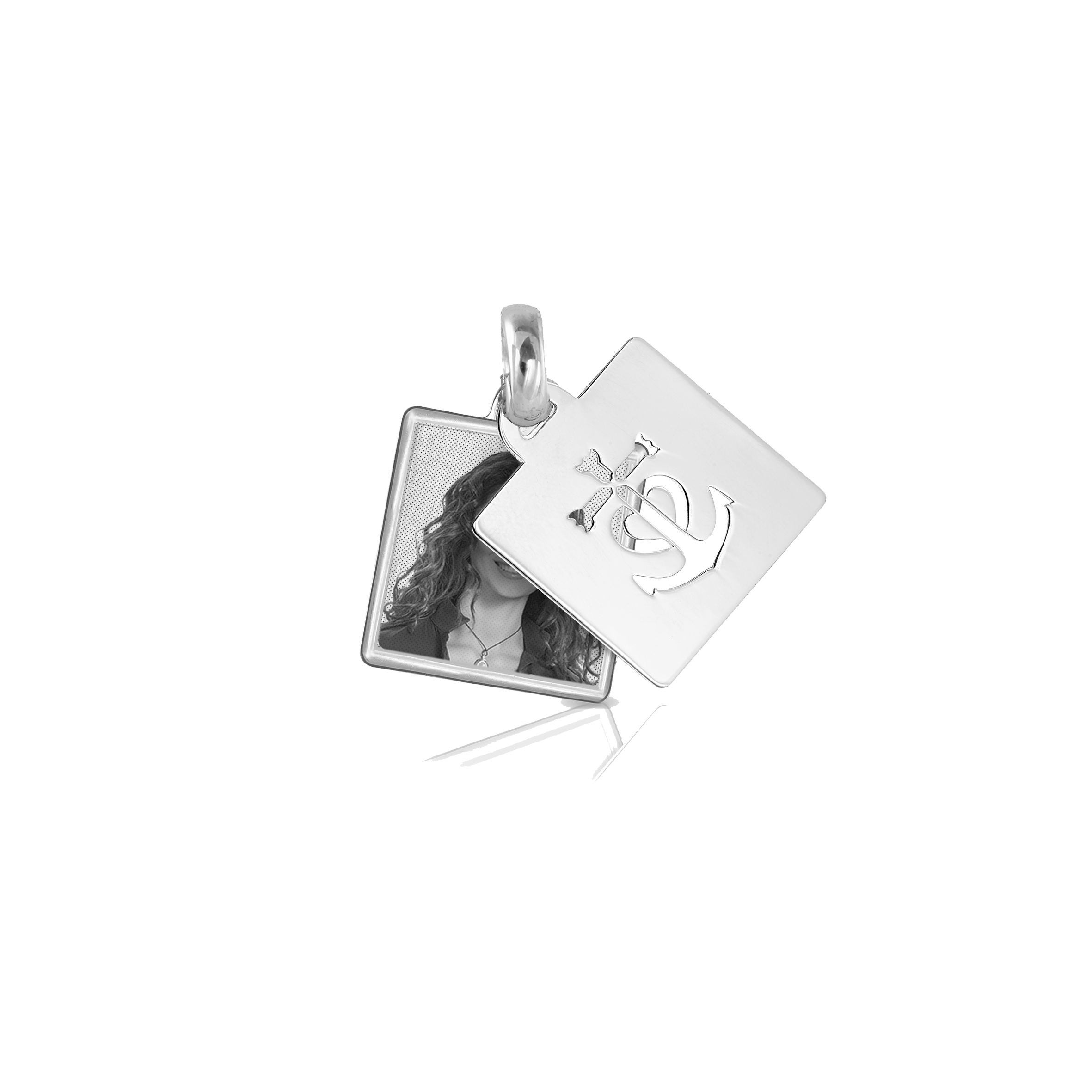 Un quadrato in argento, impreziosito da un'ancora traforata che simboleggia forza e stabilità, custodisce al suo interno una foto incisa, un ricordo che resta nel cuore. La combinazione di eleganza e significato rende ogni istante eterno, come un legame che non teme il tempo. Un gioiello che trasmette amore e protezione, perfetto per chi vuole portare sempre con sé un momento speciale. Un regalo che unisce bellezza e profondo affetto.
