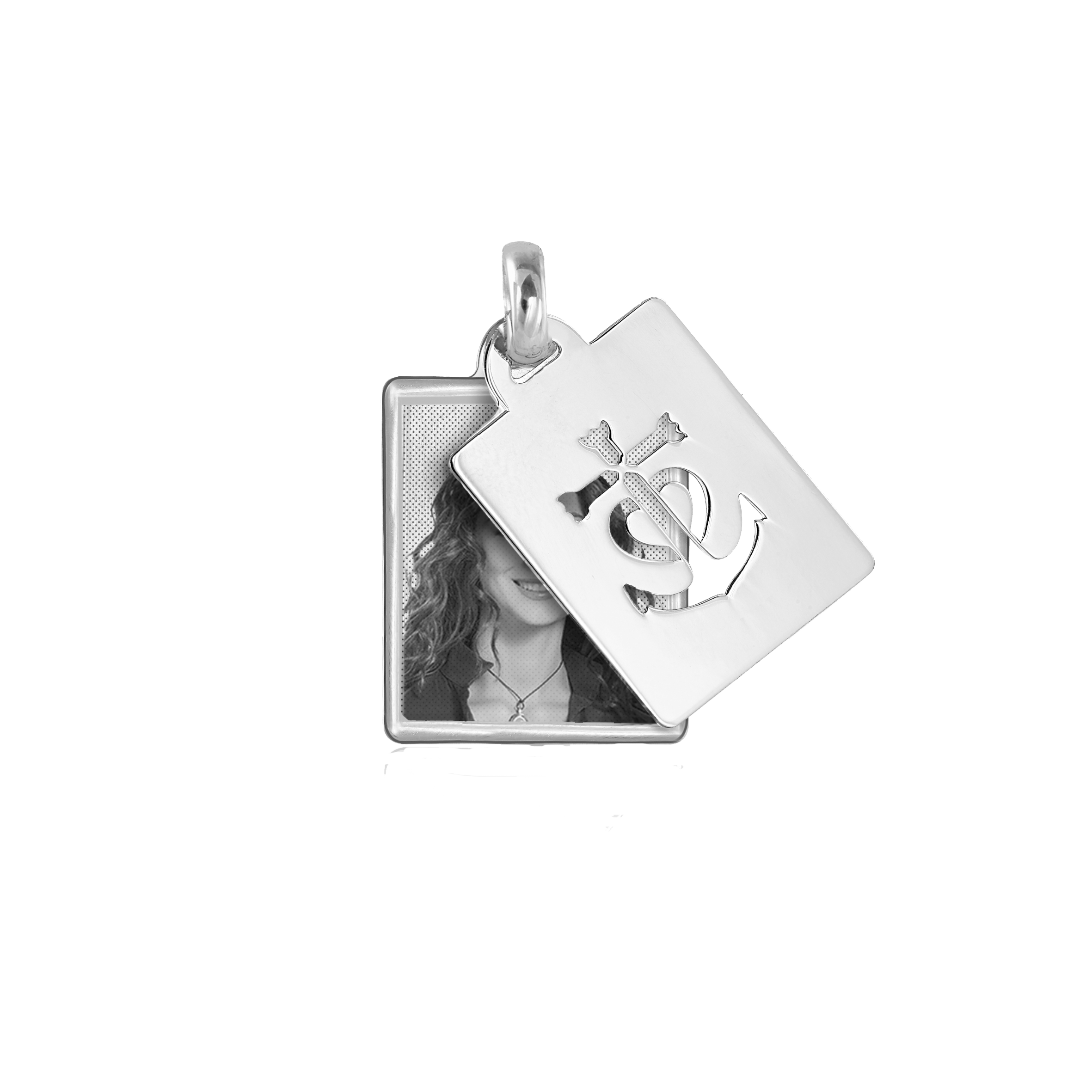 Un simbolo di speranza e amore che resiste al tempo: un elegante rettangolo in argento con un’ancora traforata, che evoca stabilità e protezione. Al suo interno, una foto incisa cattura un ricordo prezioso, come un faro che illumina il cammino del cuore. Un gioiello che parla di legami profondi, perfetto per chi vuole portare sempre con sé un momento speciale. Un regalo che unisce bellezza, significato e amore eterno.