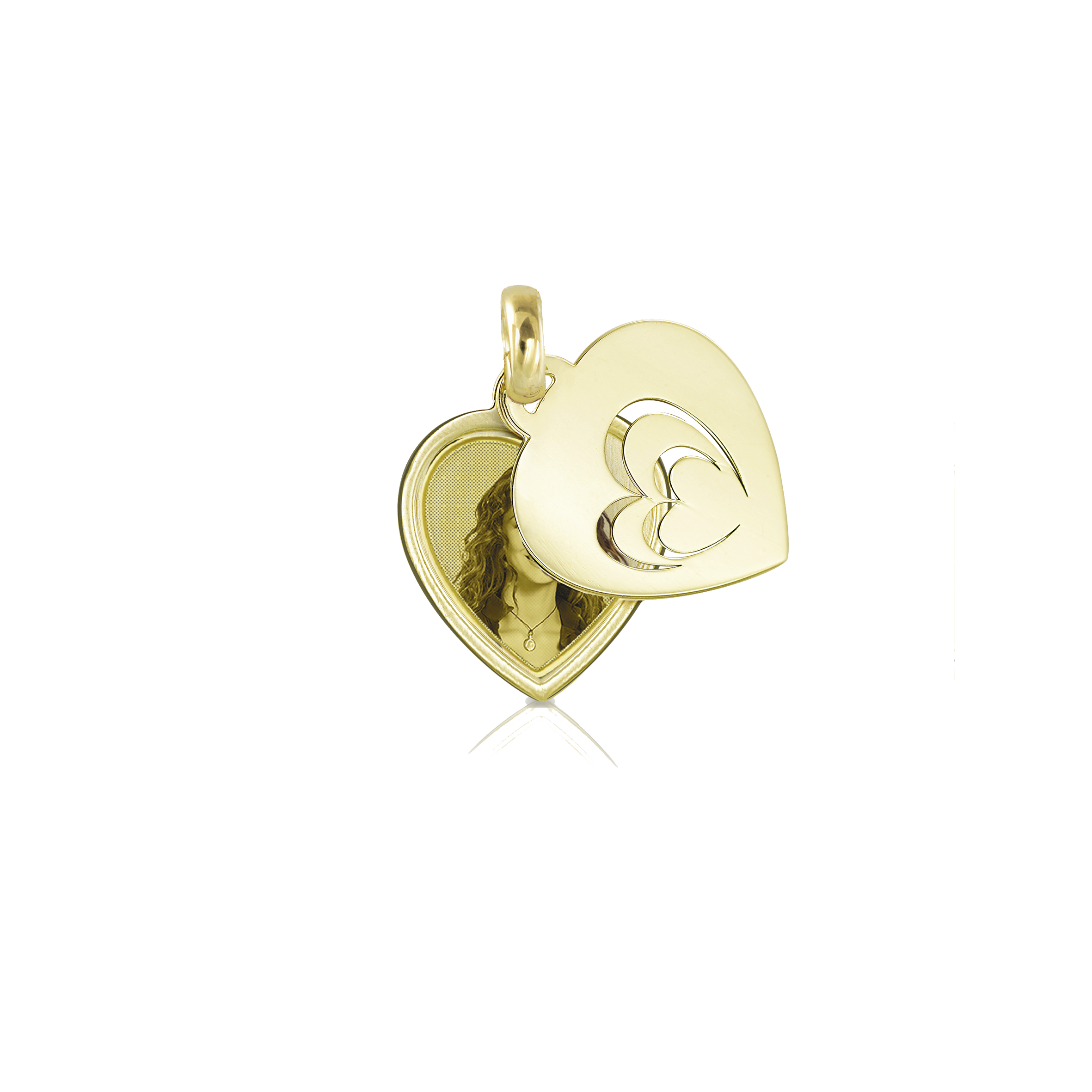 Medaglia Portafoto Cuore in Oro 18kt - Sportellino