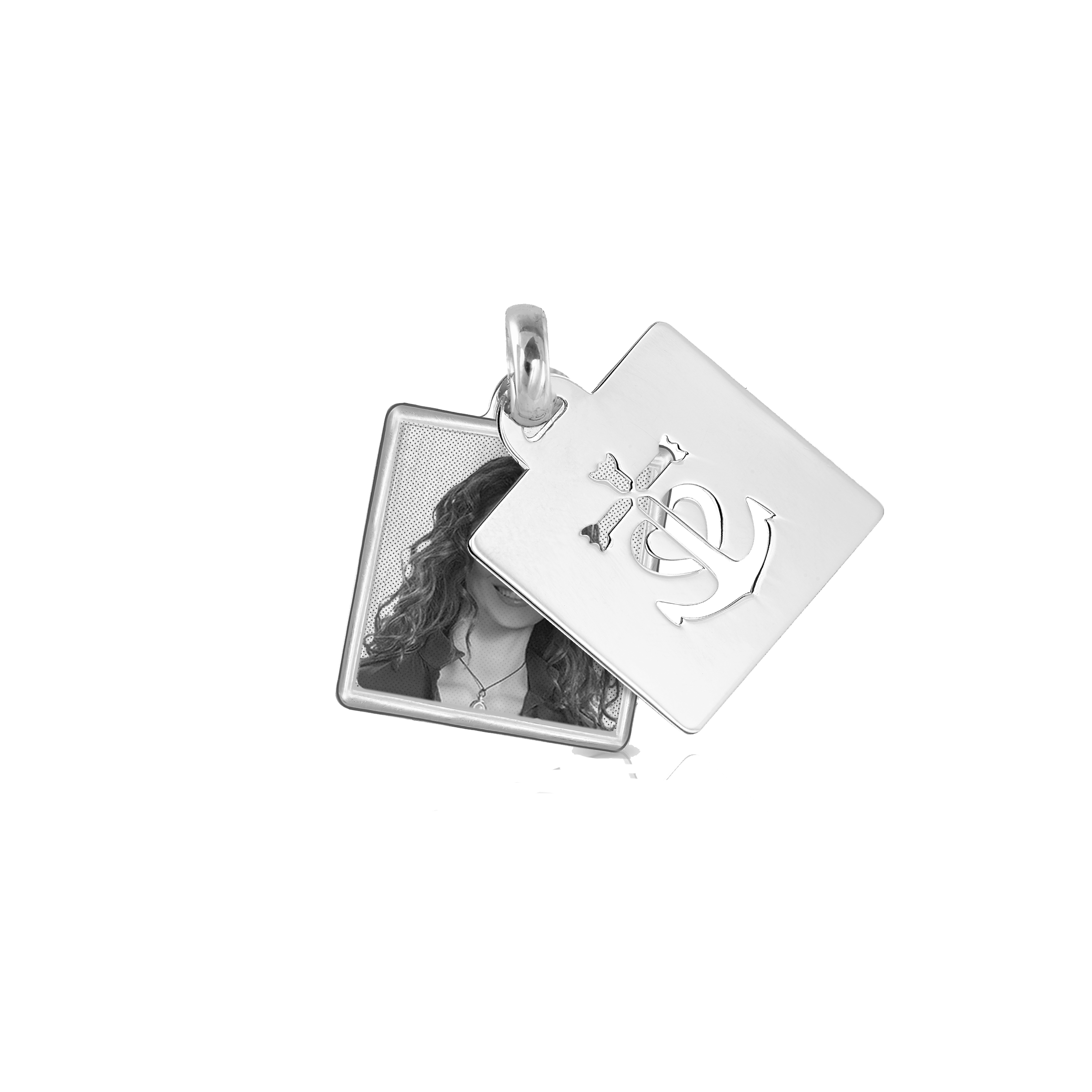 Un quadrato in oro 18kt, impreziosito da un'ancora traforata che simboleggia forza e stabilità, custodisce al suo interno una foto incisa, un ricordo che resta nel cuore. La combinazione di eleganza e significato rende ogni istante eterno, come un legame che non teme il tempo. Un gioiello che trasmette amore e protezione, perfetto per chi vuole portare sempre con sé un momento speciale. Un regalo che unisce bellezza e profondo affetto.