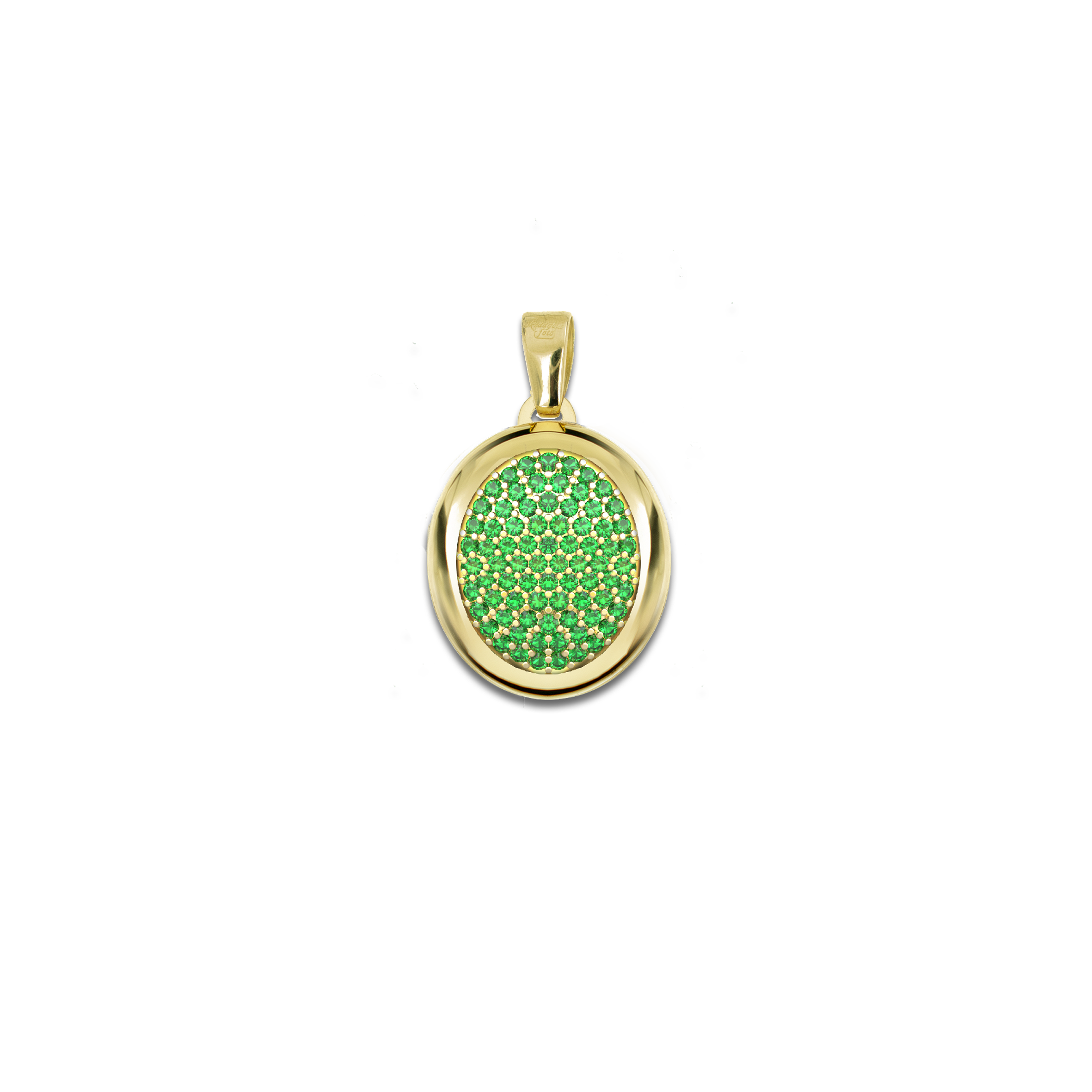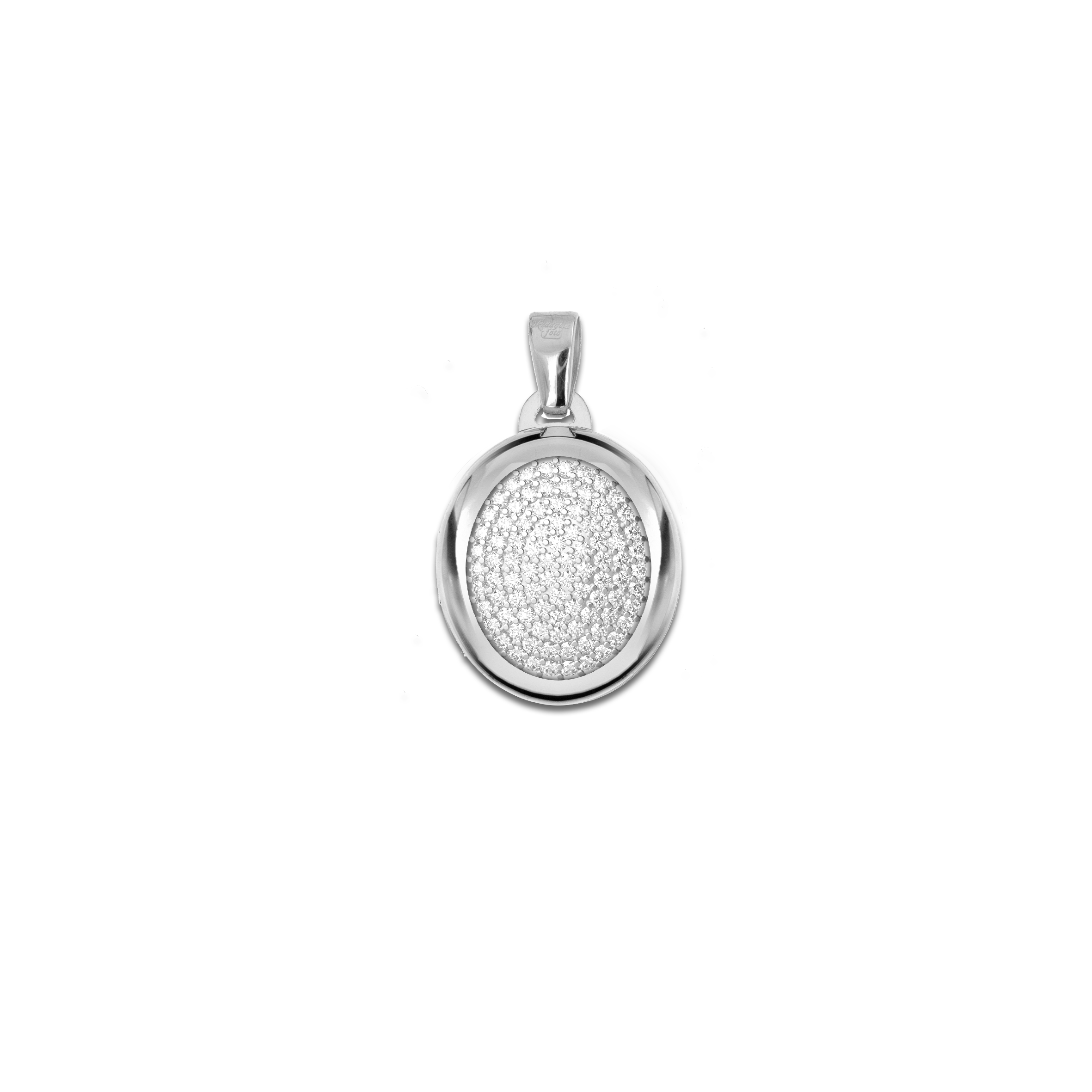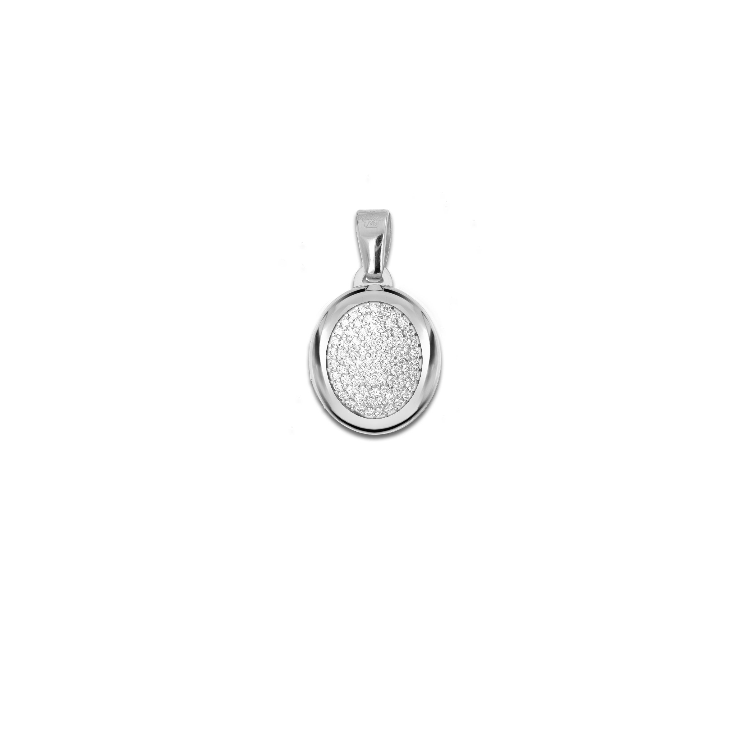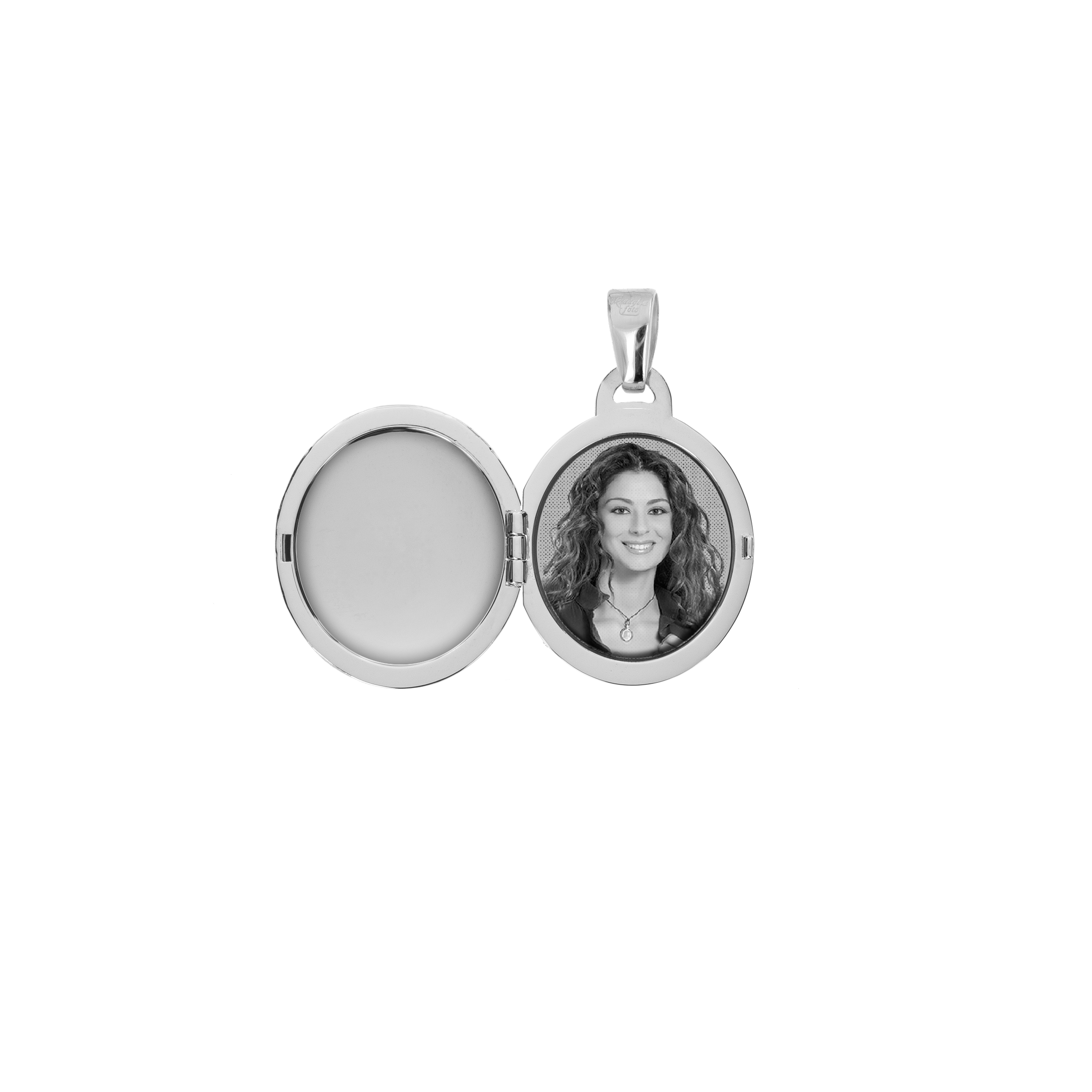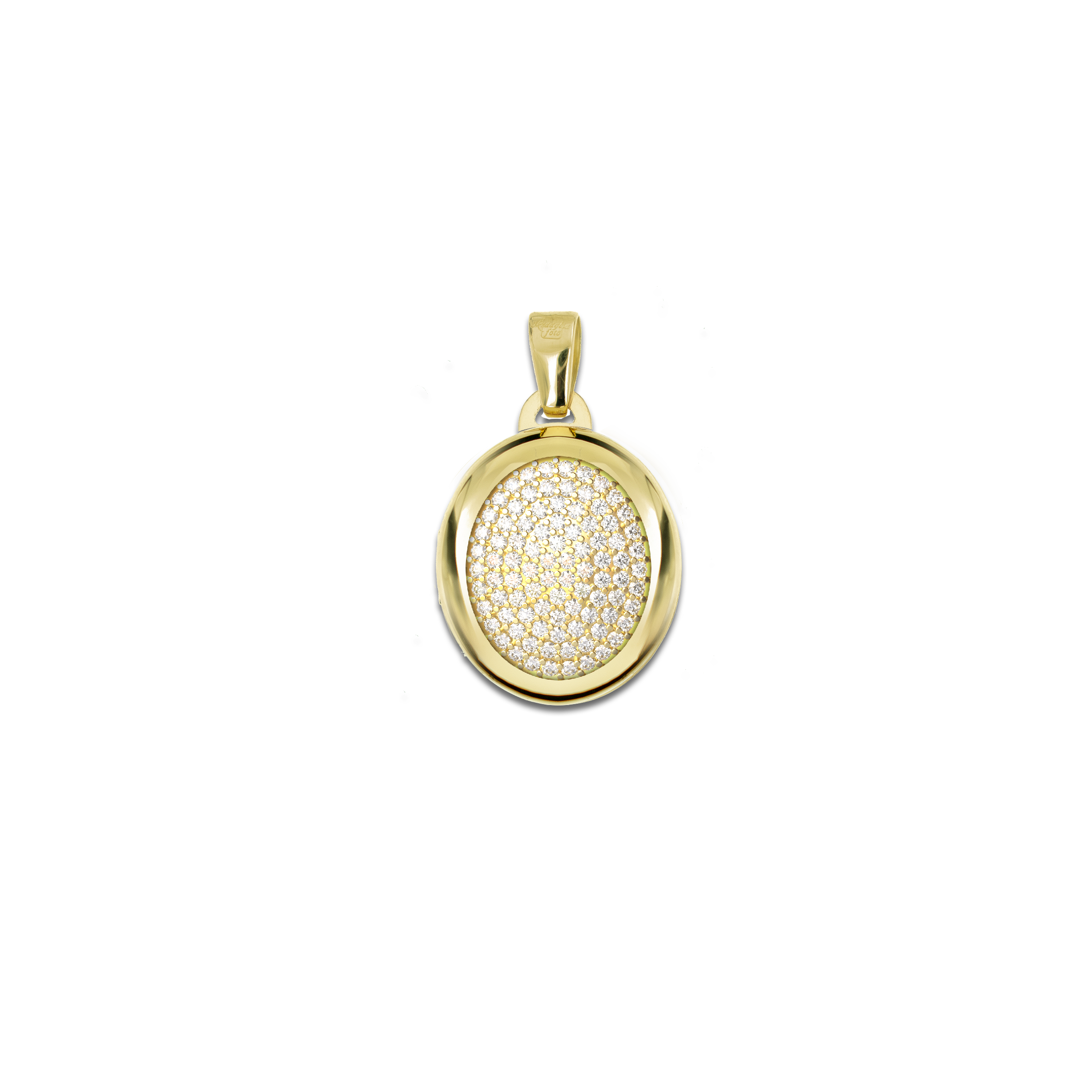 Medaglia Portafoto Ovale in Oro 18kt - Scrigno con Pavé di Zirconi