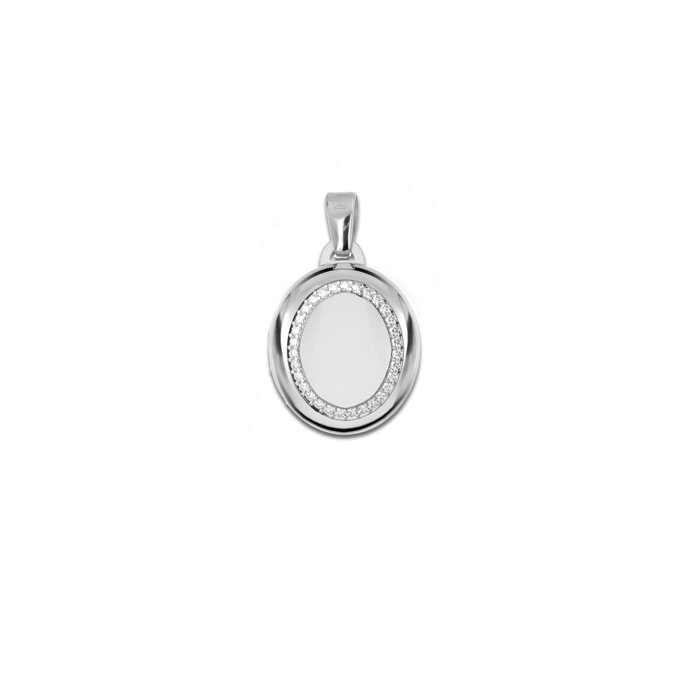 Un’elegante medaglia portafoto in oro che racchiude un mondo di emozioni. Il giro di pietre preziose scintillanti incornicia dolcemente lo spazio il cui interno è dedicato a un volto, un ricordo, un attimo eterno. Un gioiello pensato per portare sempre con sé ciò che tocca il cuore.