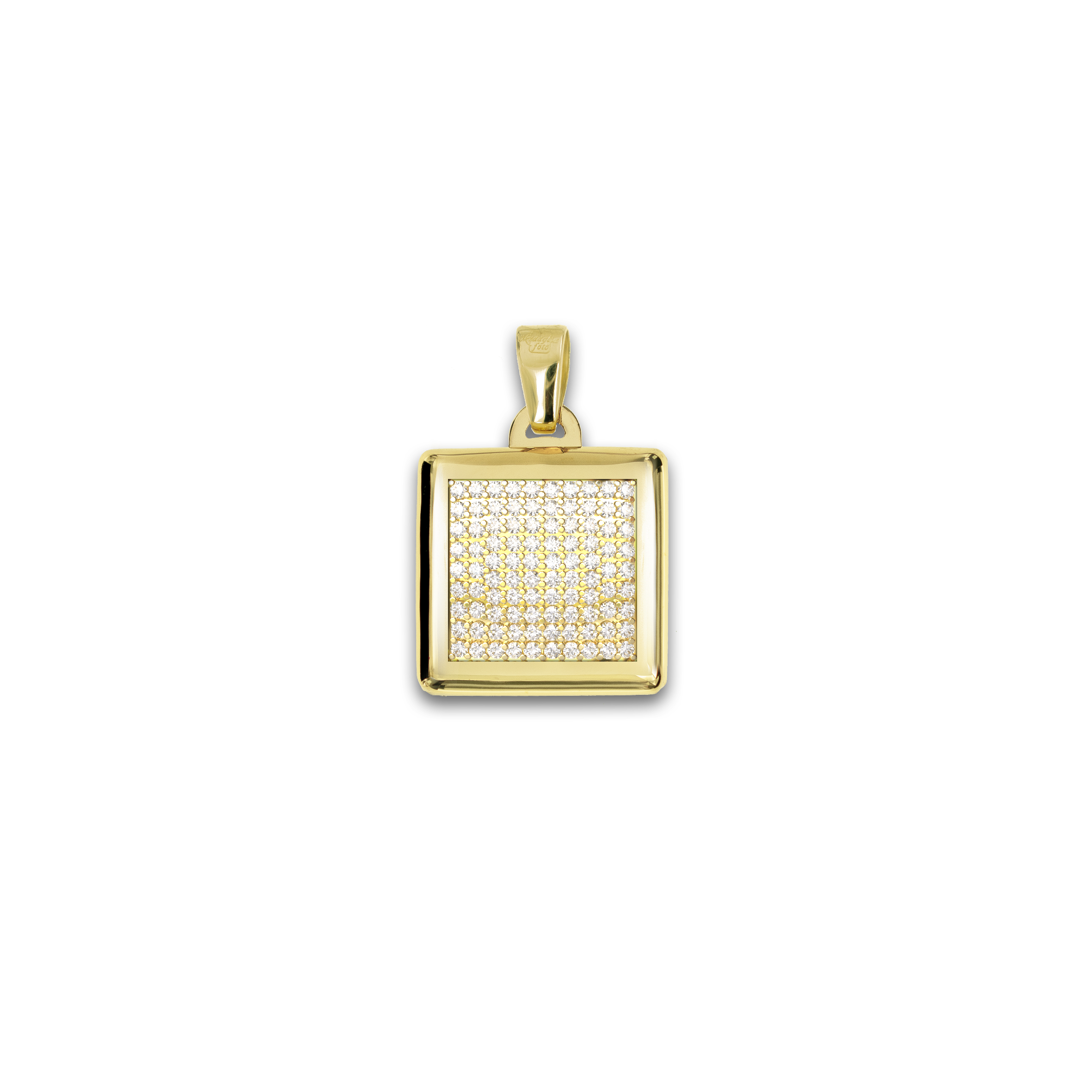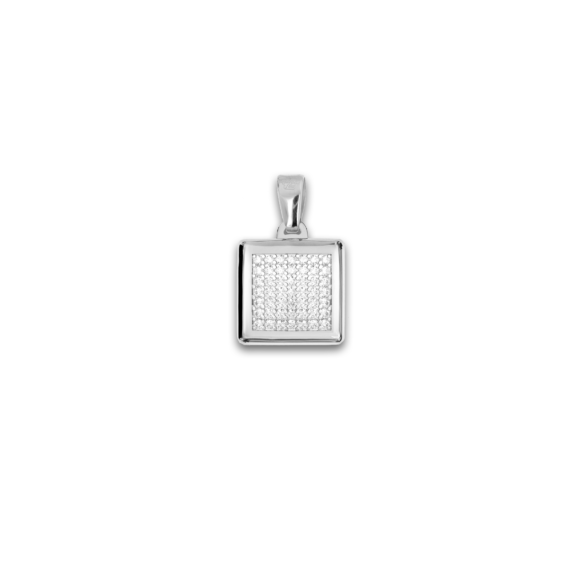 Medaglia Portafoto Quadrata in Argento - Scrigno con Pavé di Zirconi