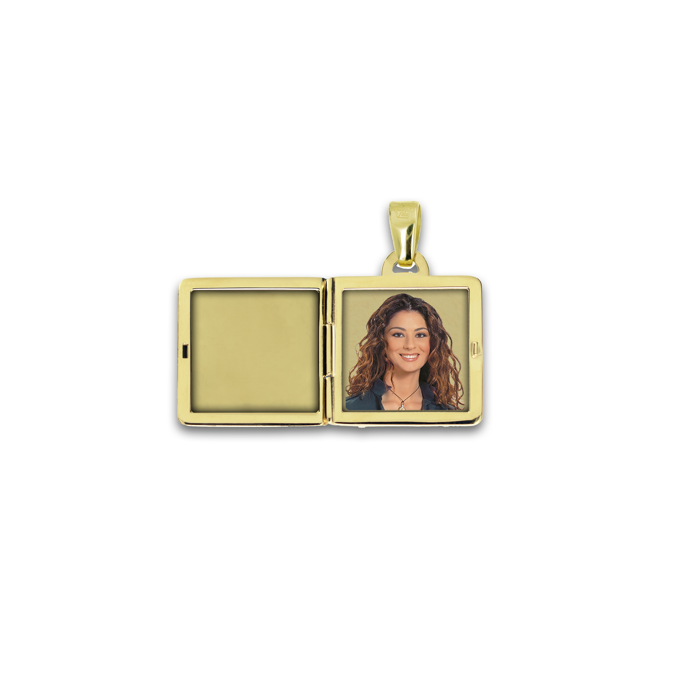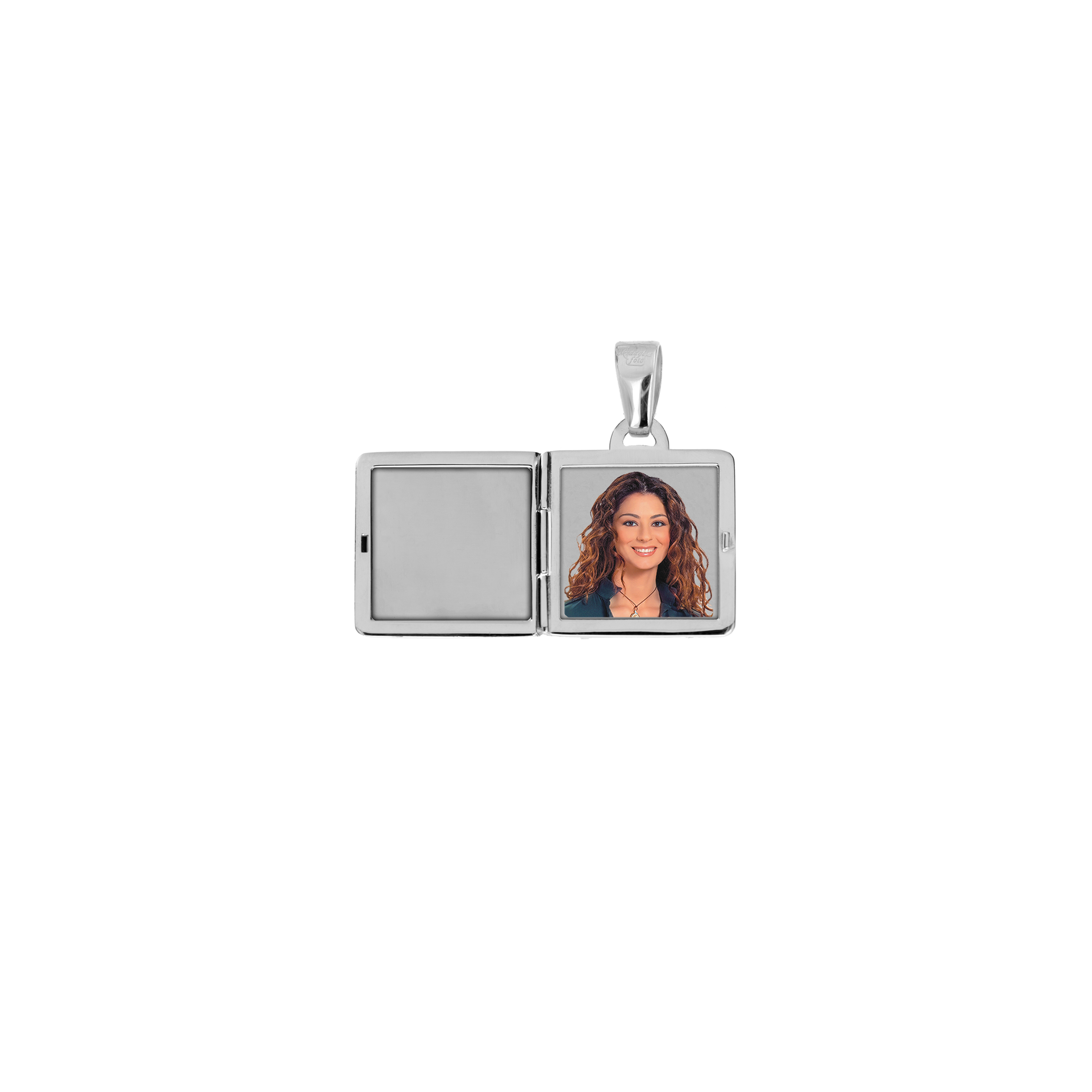 Medaglia Portafoto Quadrata in Argento - Scrigno con Zirconi