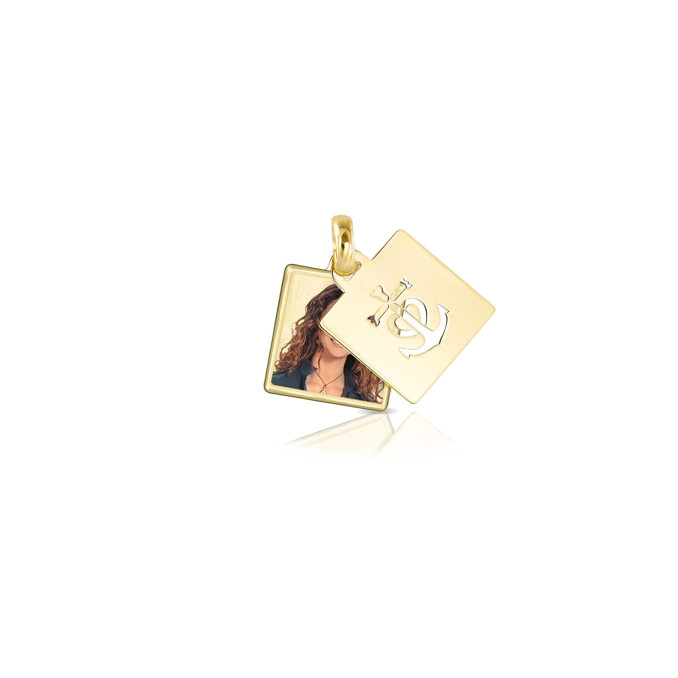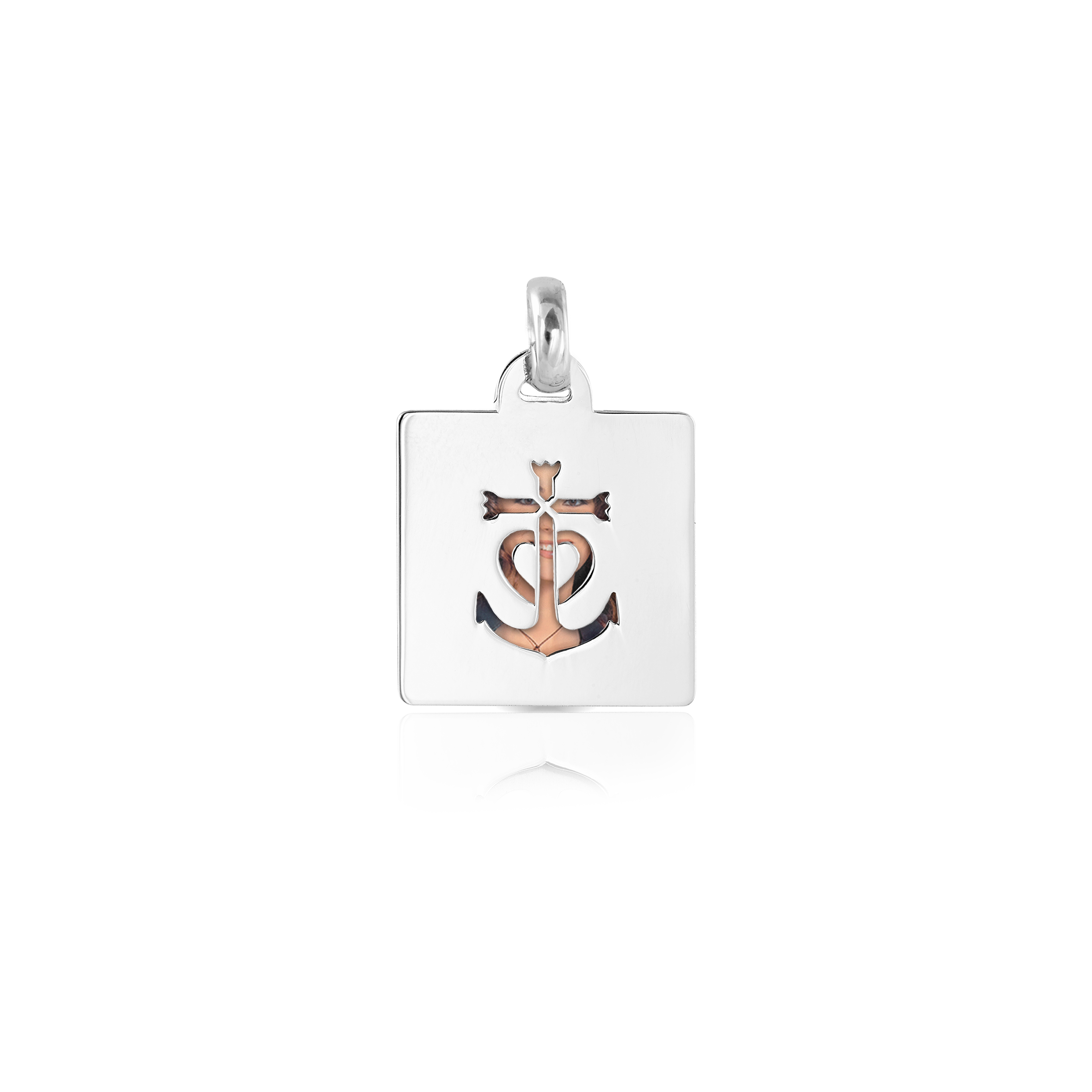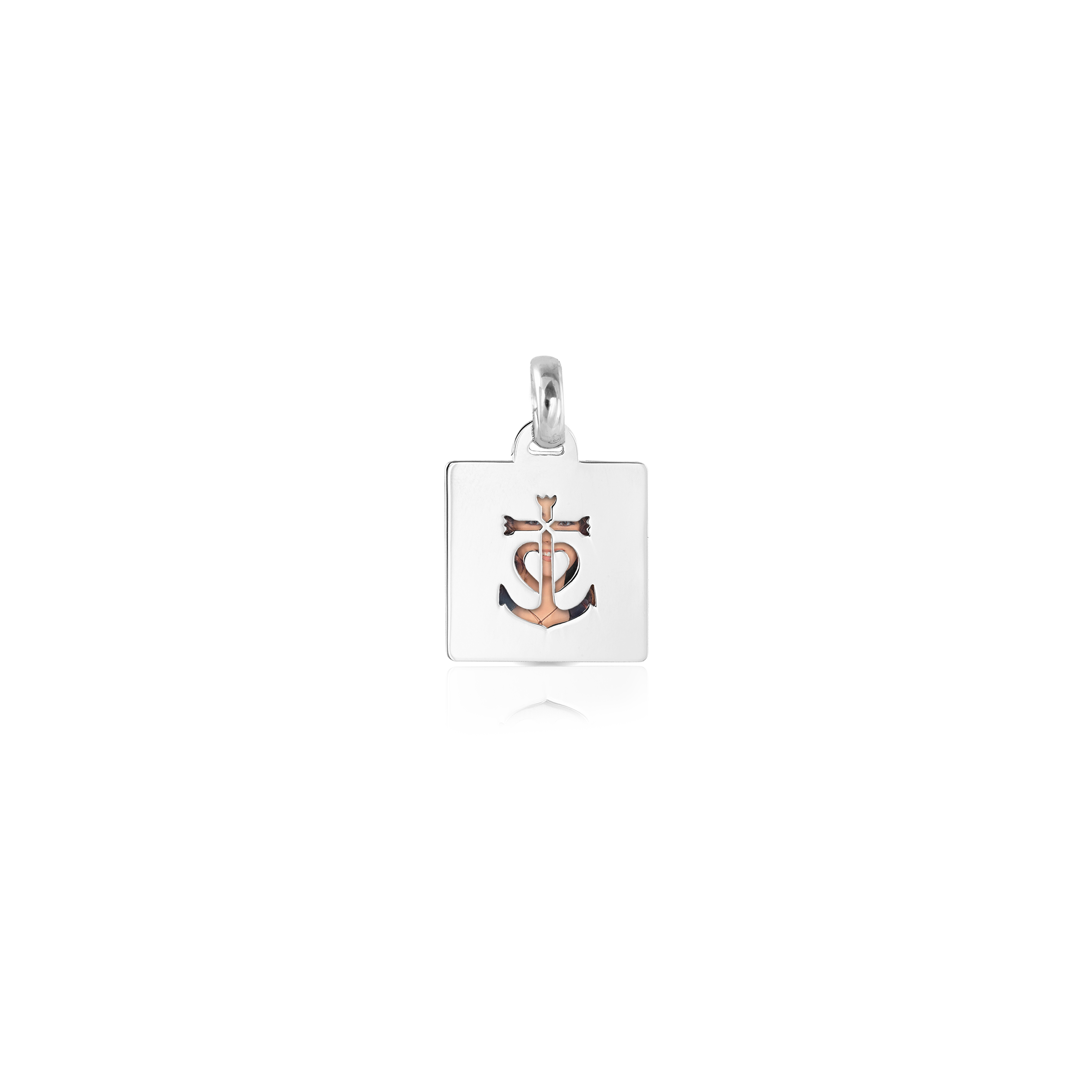 Un quadrato in argento, impreziosito da un'ancora traforata che simboleggia forza e stabilità, custodisce al suo interno una foto a colori, un ricordo che resta nel cuore. La combinazione di eleganza e significato rende ogni istante eterno, come un legame che non teme il tempo. Un gioiello che trasmette amore e protezione, perfetto per chi vuole portare sempre con sé un momento speciale. Un regalo che unisce bellezza e profondo affetto.