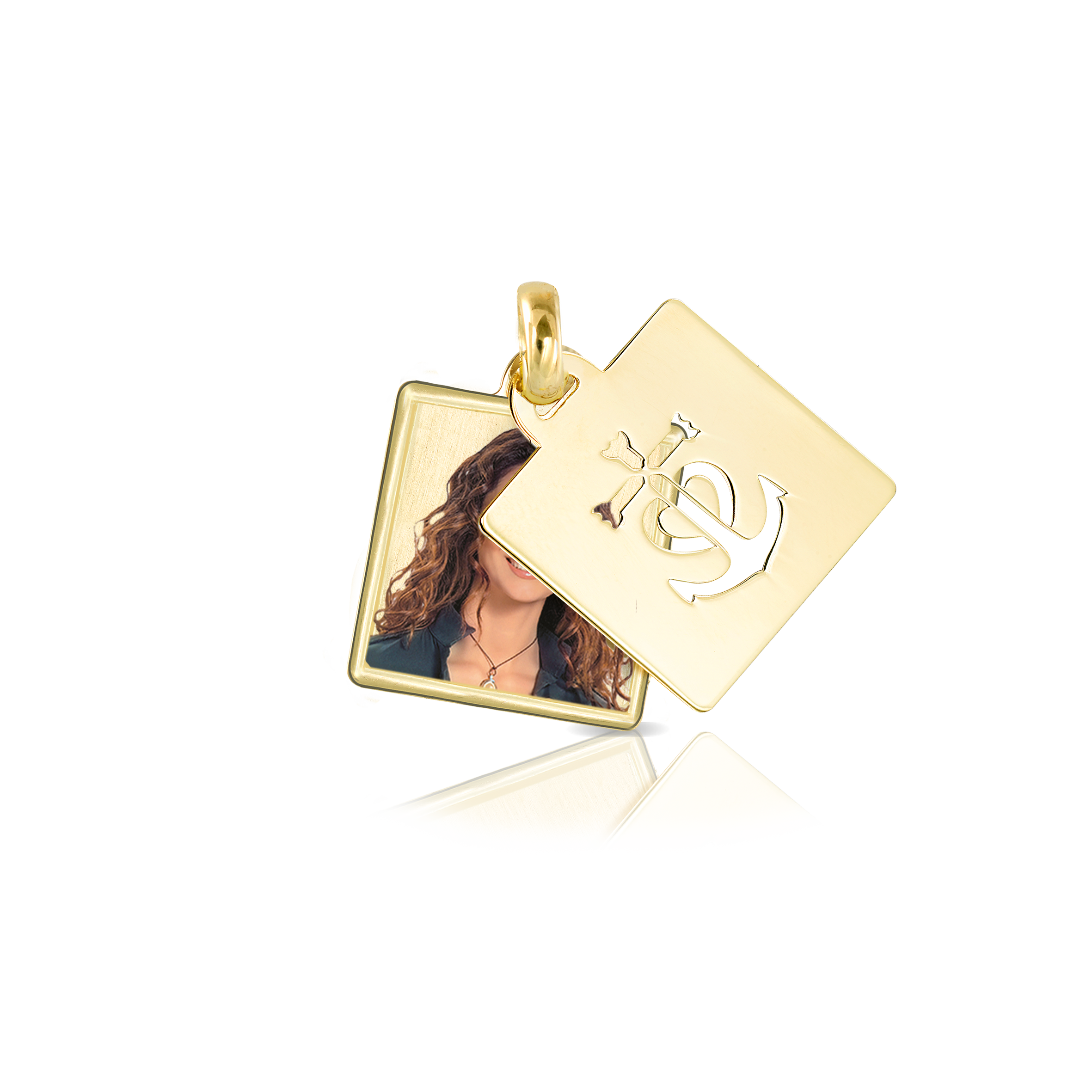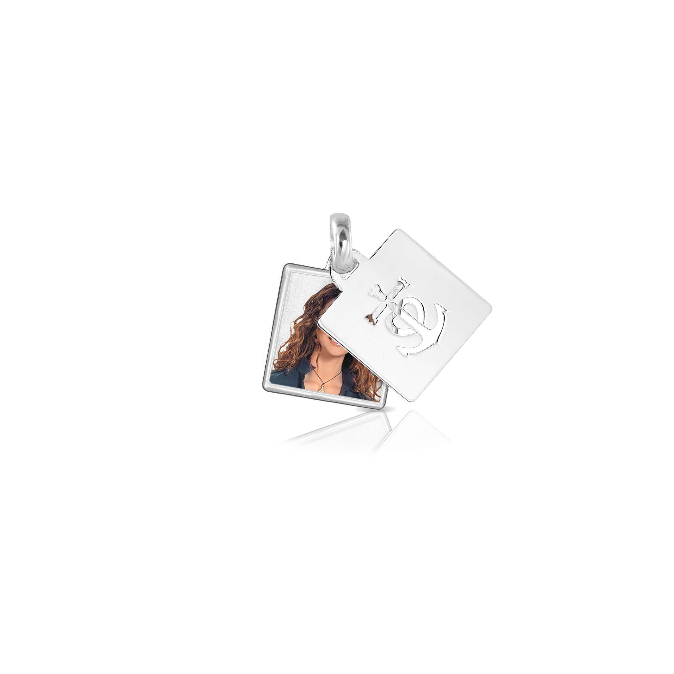Un quadrato in oro 18kt, impreziosito da un'ancora traforata che simboleggia forza e stabilità, custodisce al suo interno una foto a colori, un ricordo che resta nel cuore. La combinazione di eleganza e significato rende ogni istante eterno, come un legame che non teme il tempo. Un gioiello che trasmette amore e protezione, perfetto per chi vuole portare sempre con sé un momento speciale. Un regalo che unisce bellezza e profondo affetto.