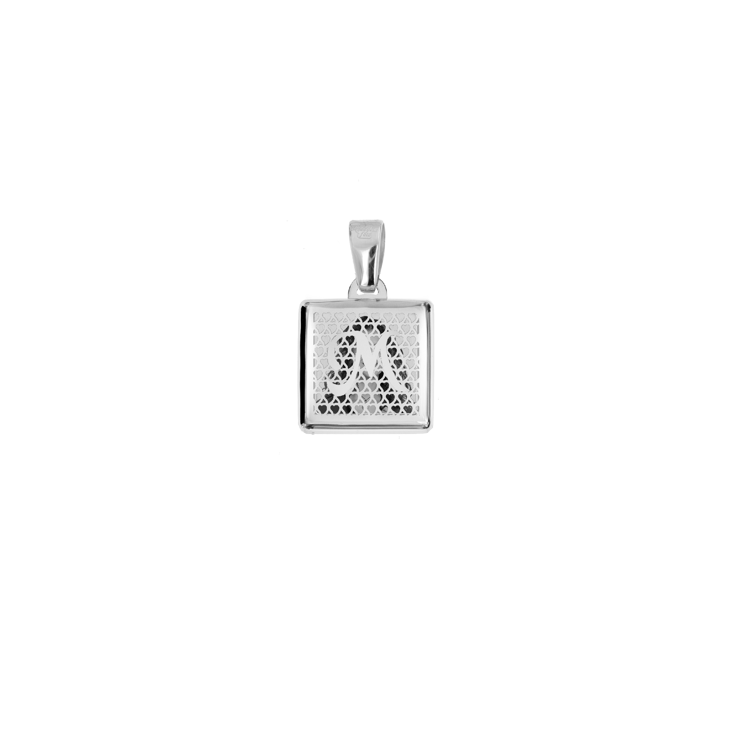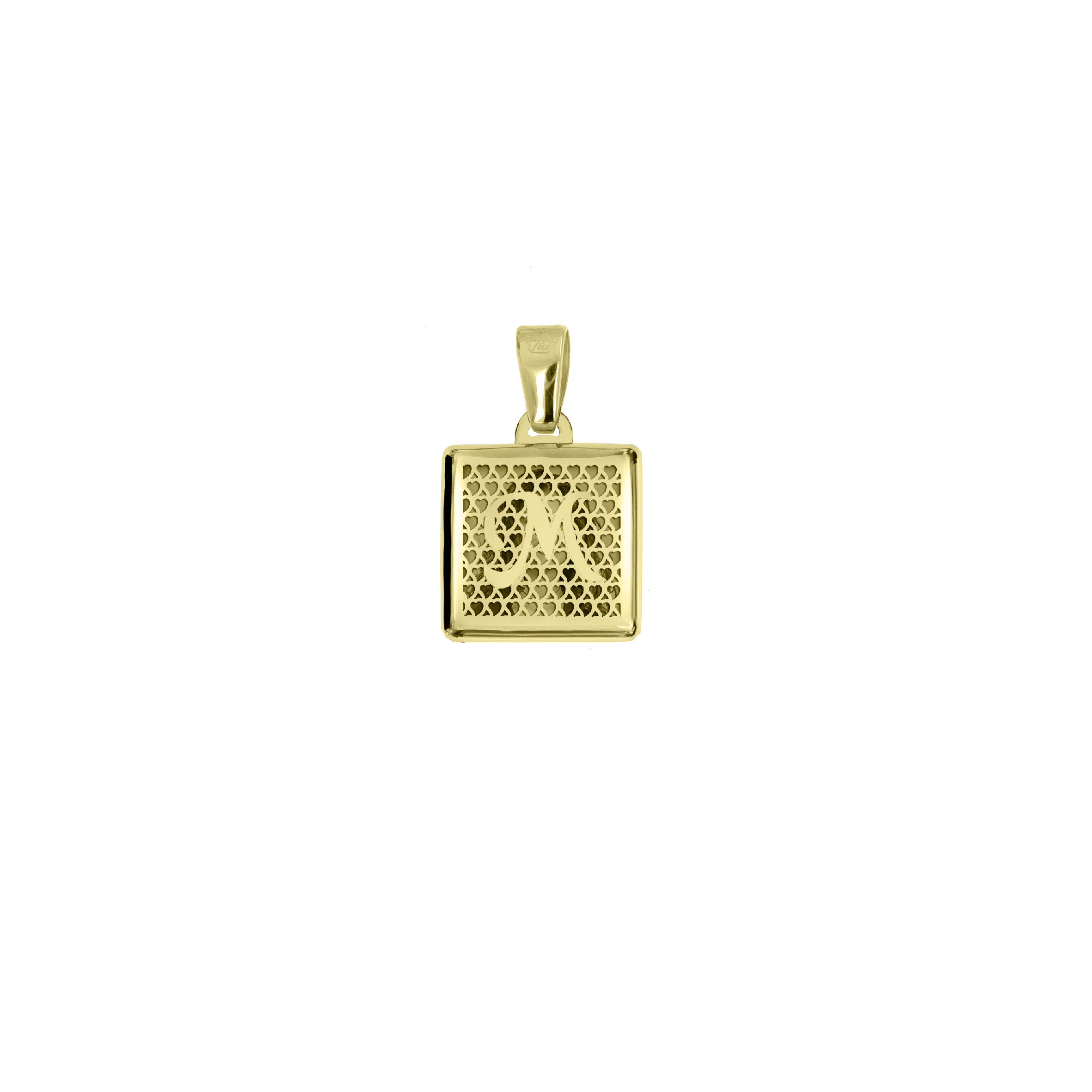 Medaglia Portafoto Quadrata in Oro 18kt - Traforata con Iniziale