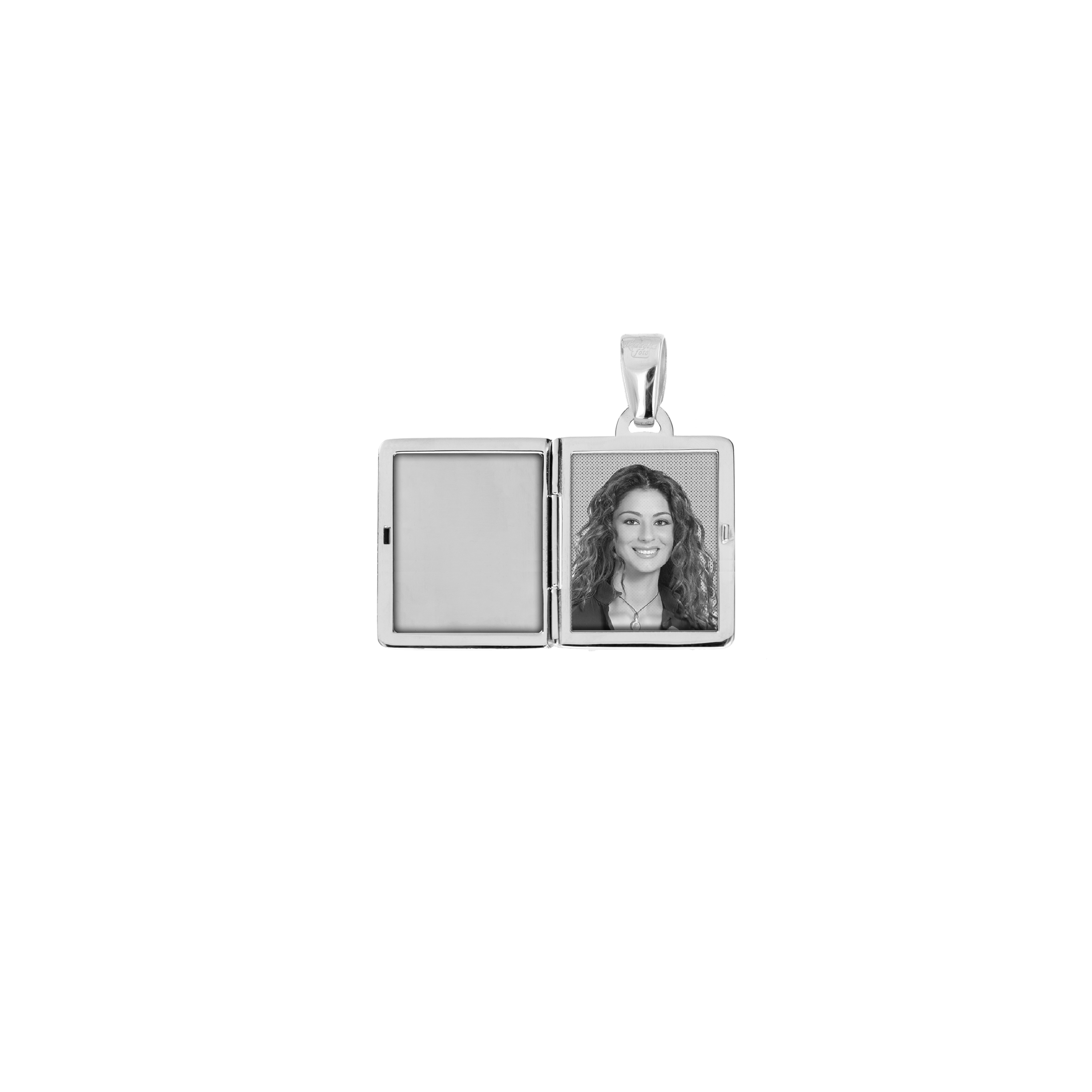 Medaglia Portafoto Rettangolare in Oro 18kt - Scrigno con Zirconi