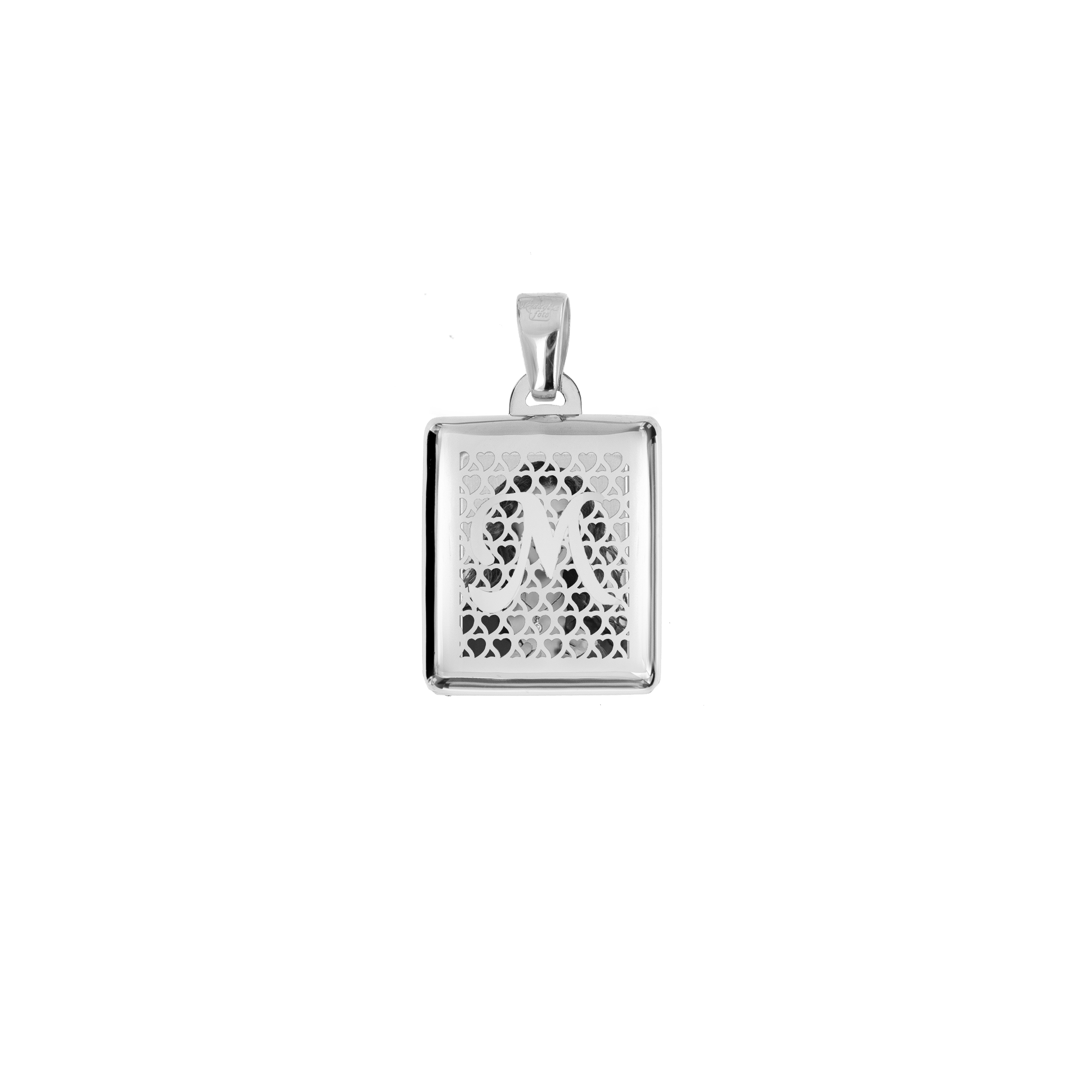 Medaglia Portafoto Rettangolare in Oro 18kt - Traforata con Iniziale