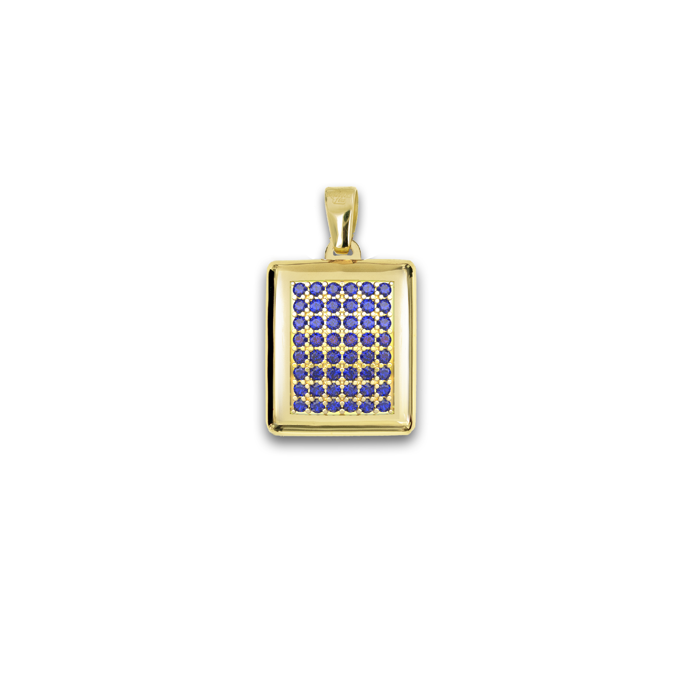 Medaglia Portafoto Rettangolare in Oro 9kt - Scrigno con Pavé di Pietre Preziose