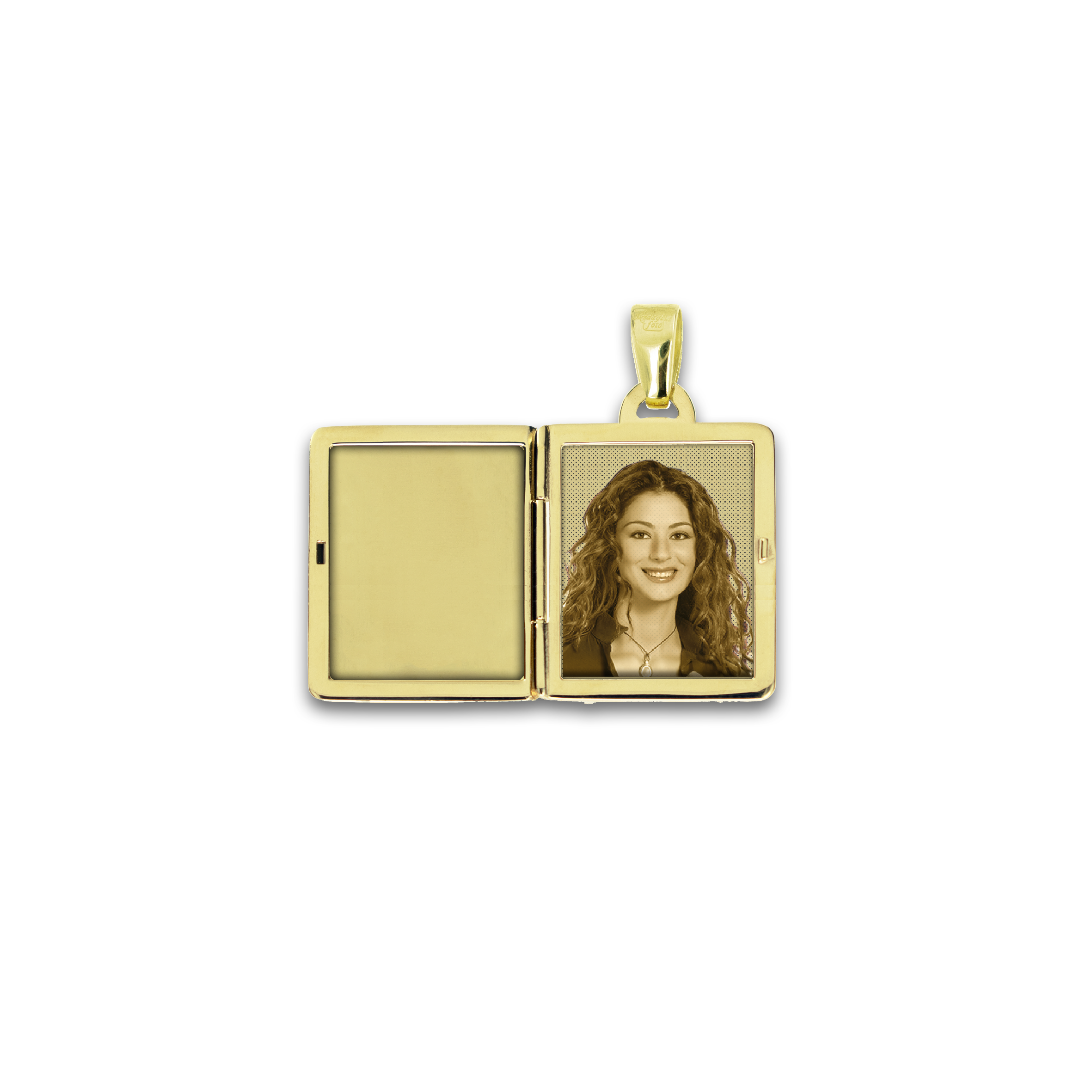 Medaglia Portafoto Rettangolare in Oro 9kt - Scrigno con Zirconi