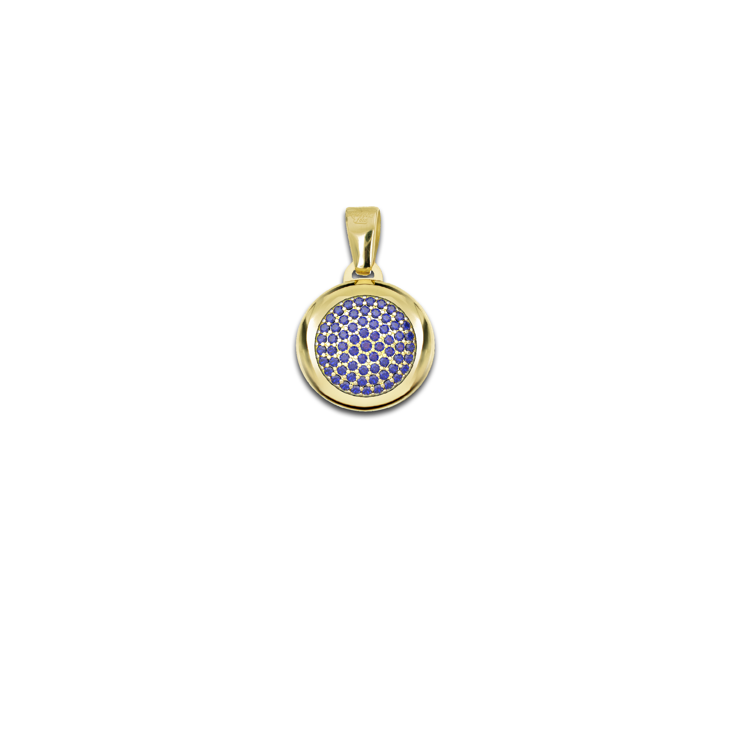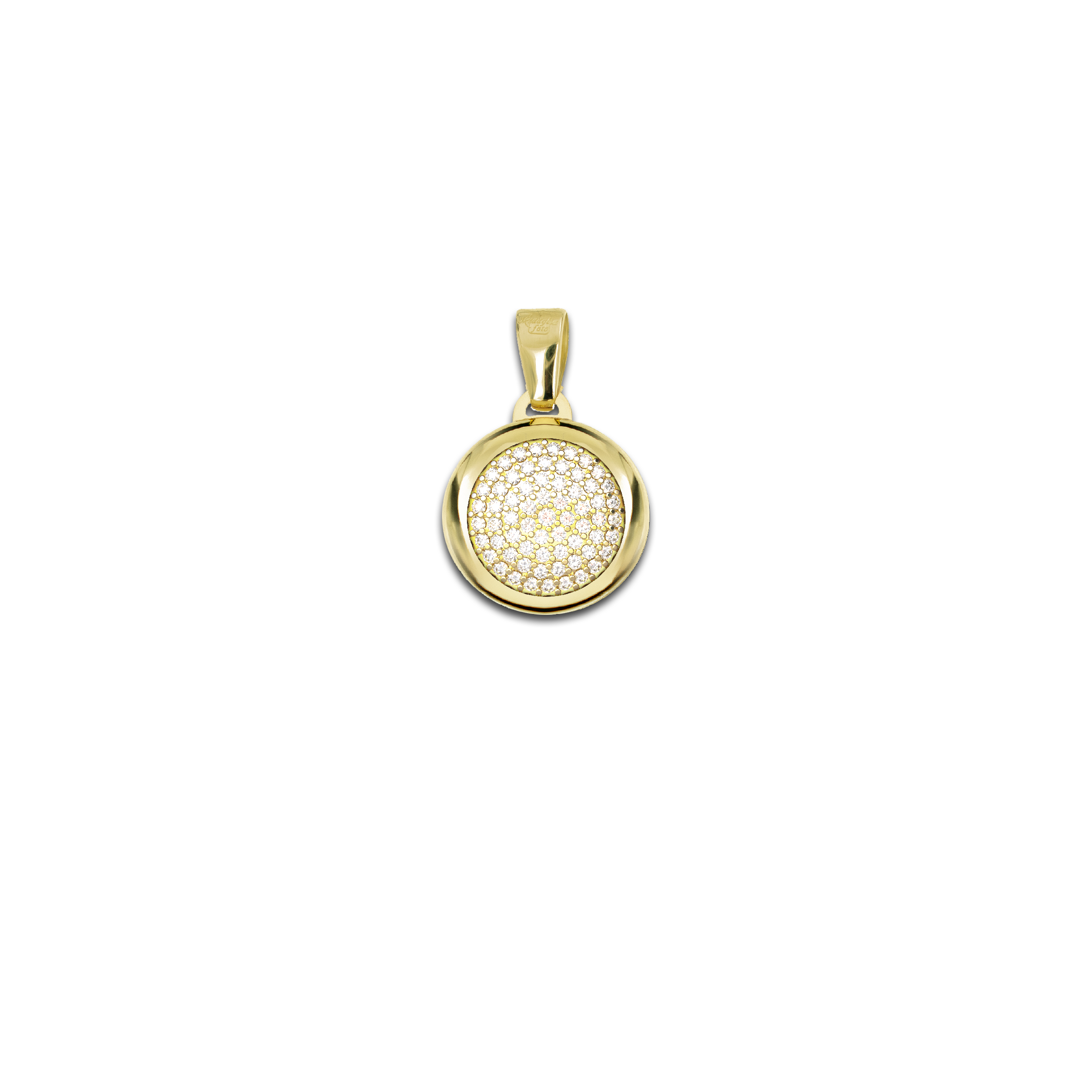 Una luce preziosa custodisce ciò che ami. Questa medaglia portafoto tonda, con scudo ricoperto da un pavé di pietre preziose scintillanti, racchiude emozioni da portare sempre con te.