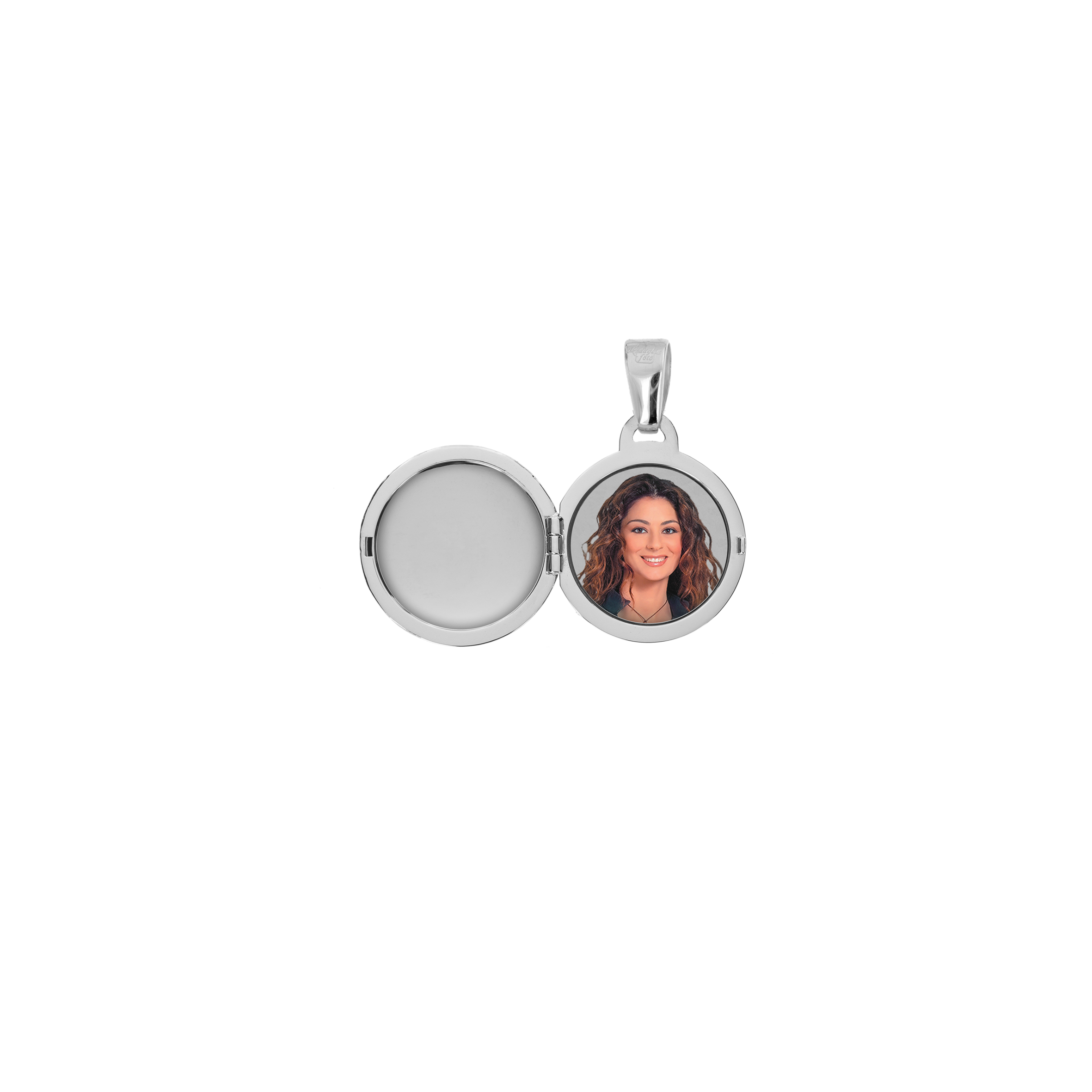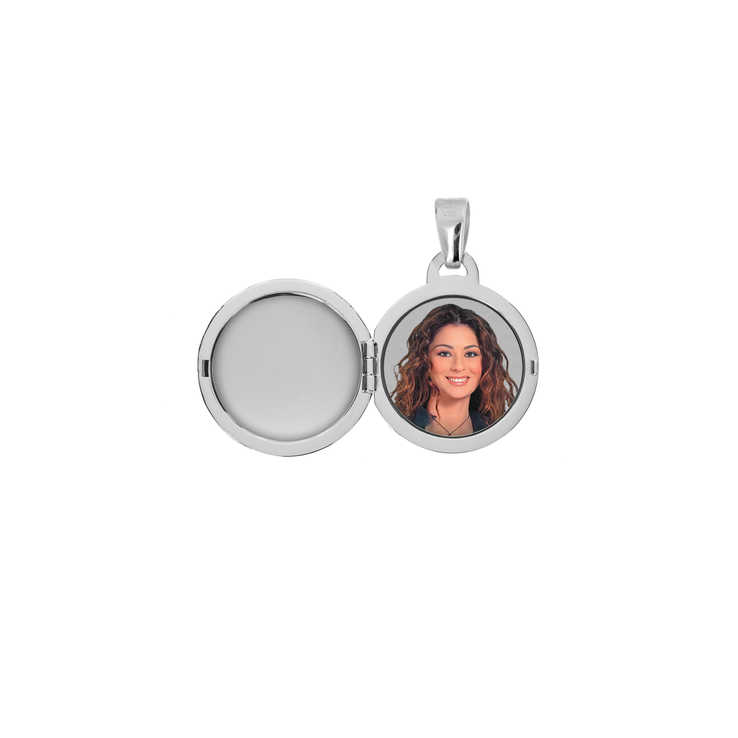 Medaglia Portafoto Tonda in Oro 18kt - Scrigno con Pavé di Zirconi