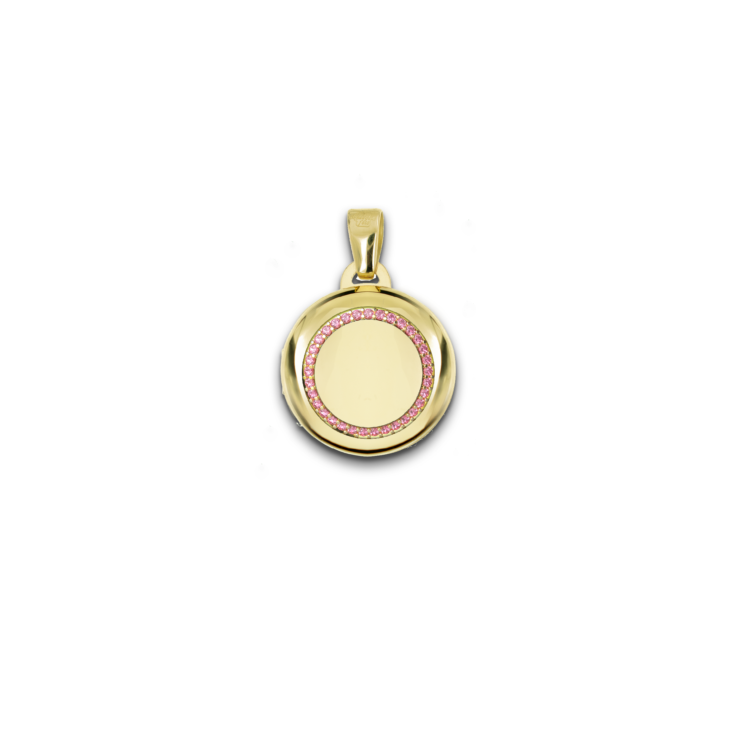 Medaglia Portafoto Tonda in Oro 18kt - Scrigno con Pietre Preziose
