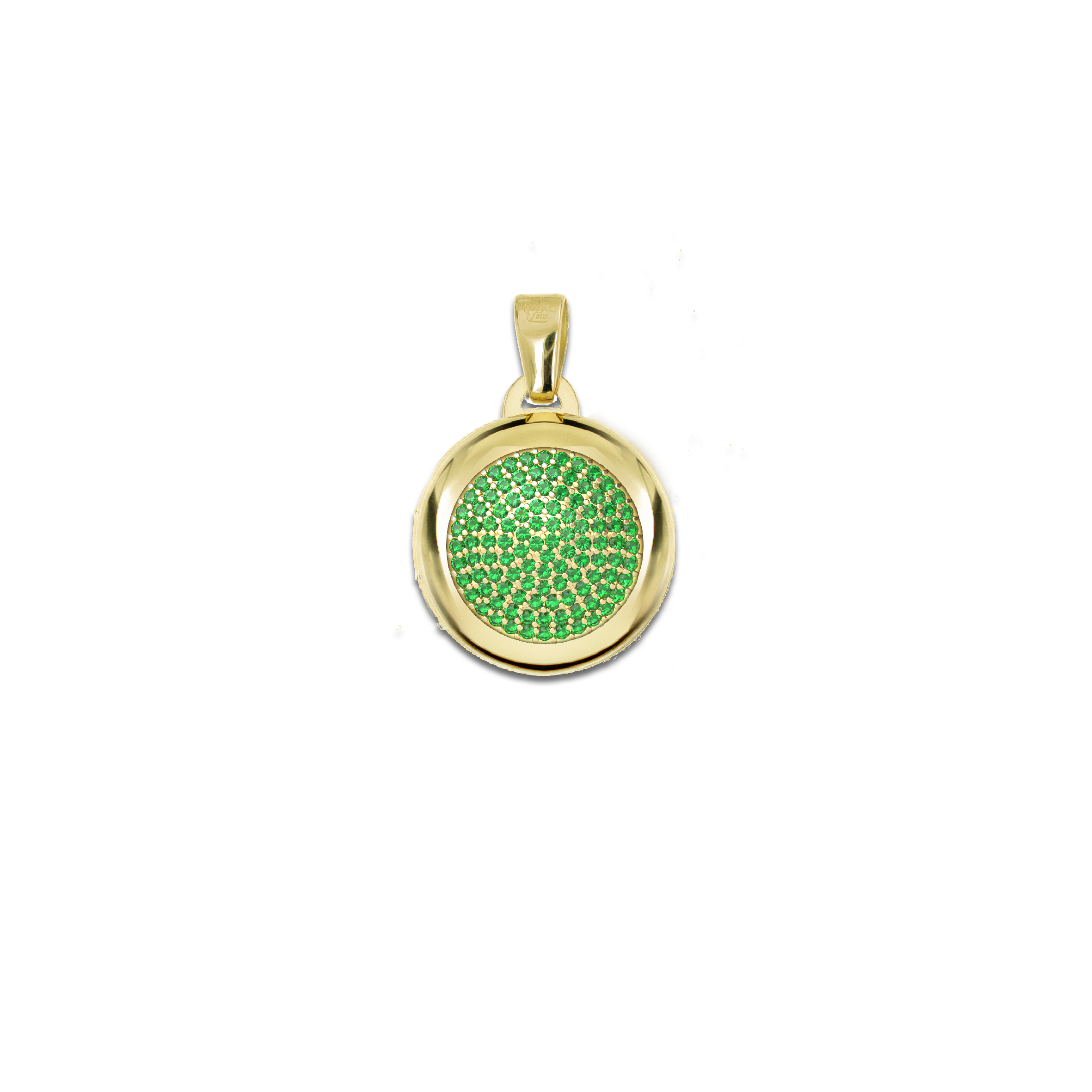 Medaglia Portafoto Tonda in Oro 9kt - Scrigno con Pavé di Pietre Preziose