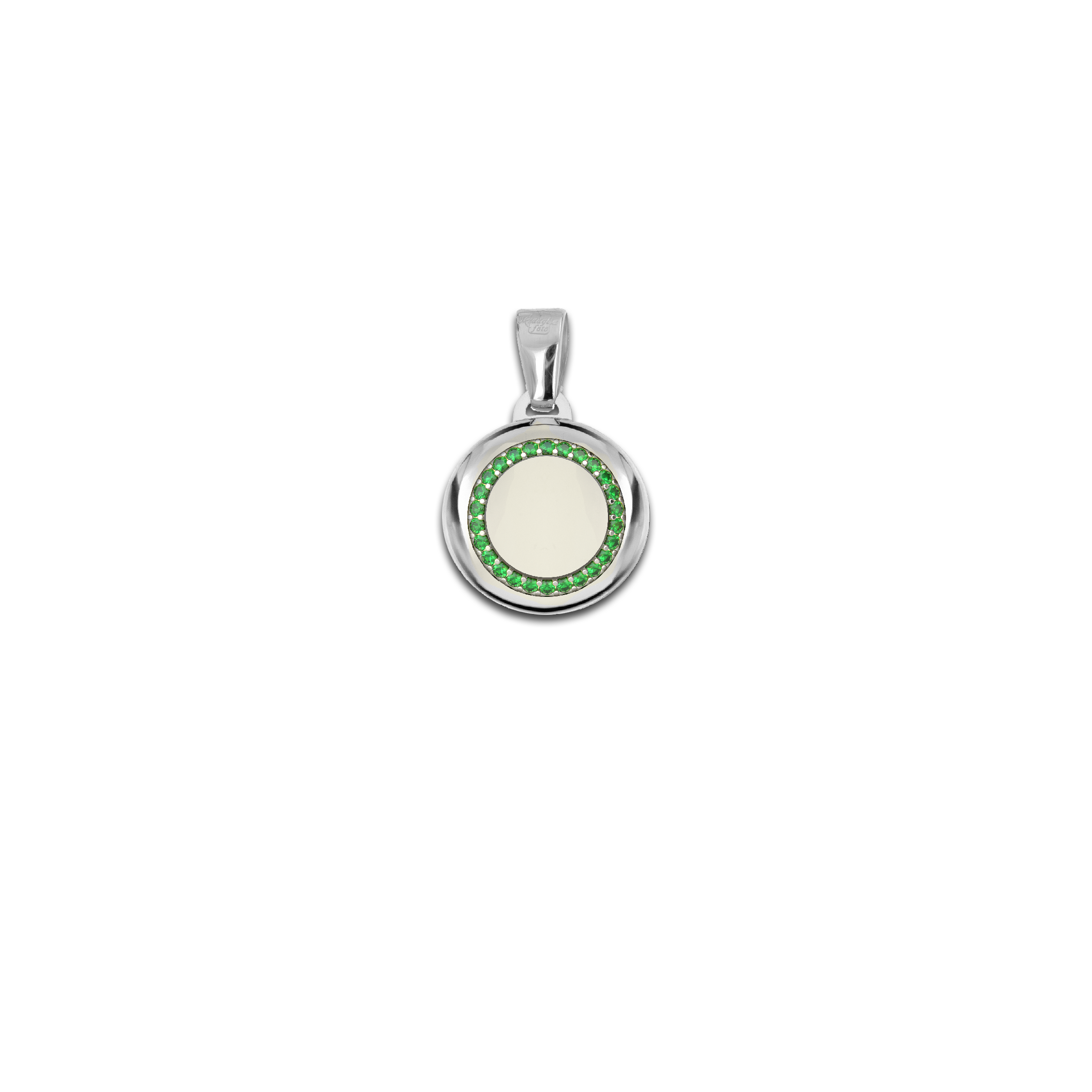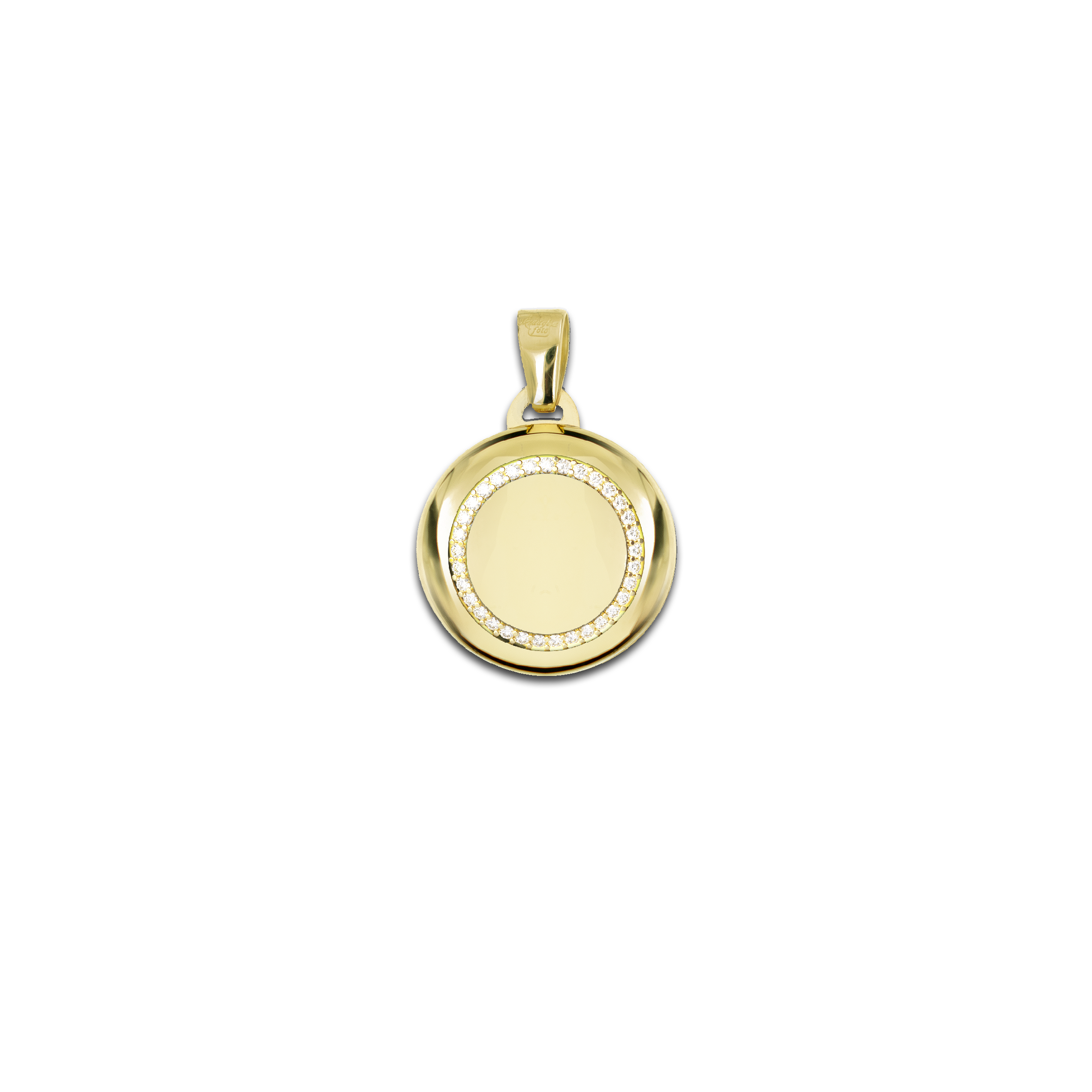 Elegante e senza tempo, questa medaglia portafoto tonda in oro 18kt è impreziosita da un raffinato giro di pietre preziose che ne esalta la luminosità. Pensata per custodire un ricordo prezioso, un volto amato, un momento indimenticabile. Un gioiello intimo e ricco di significato, da portare sempre vicino al cuore.