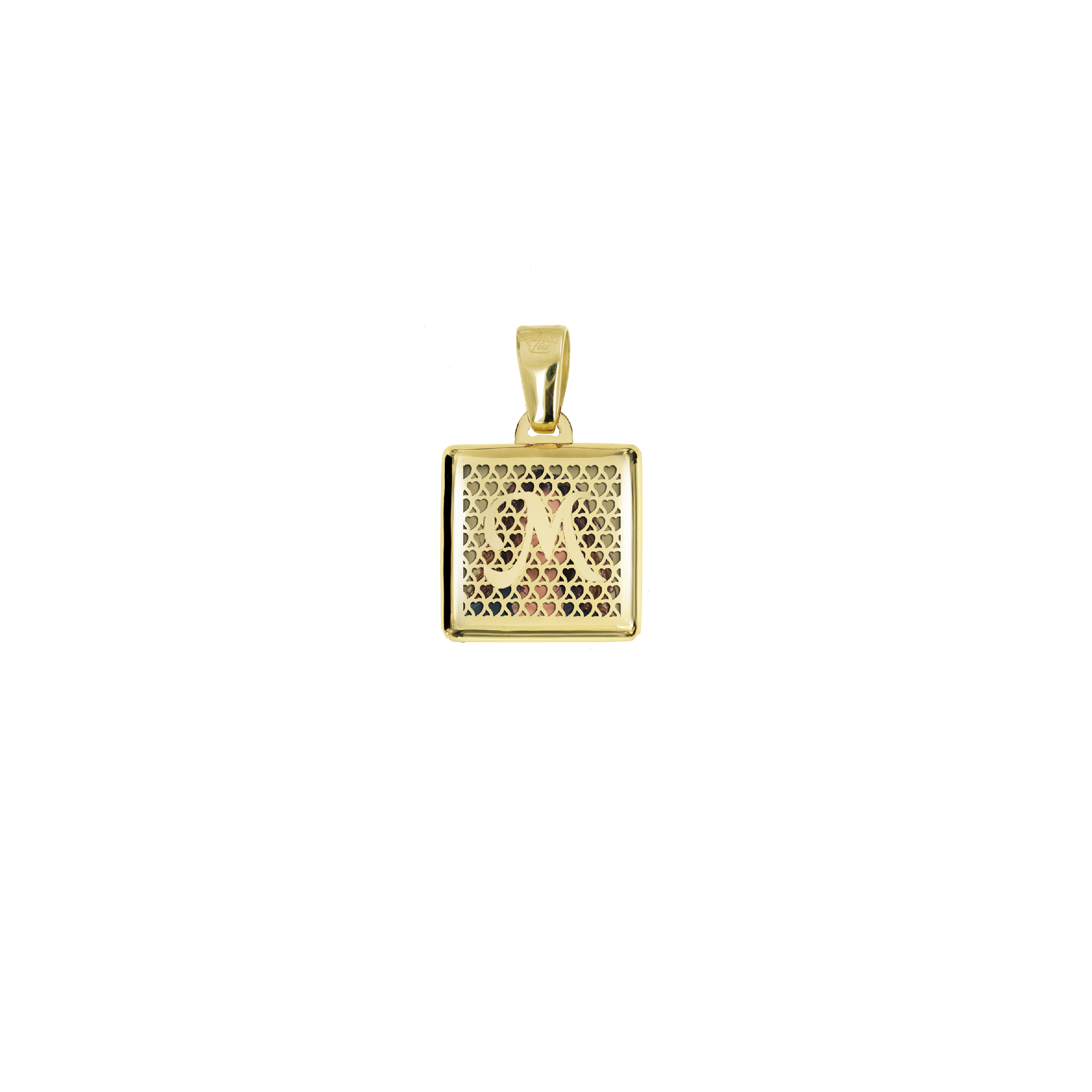 Medaglia Portafoto Quadrata in Oro 9kt - Traforata con Iniziale
