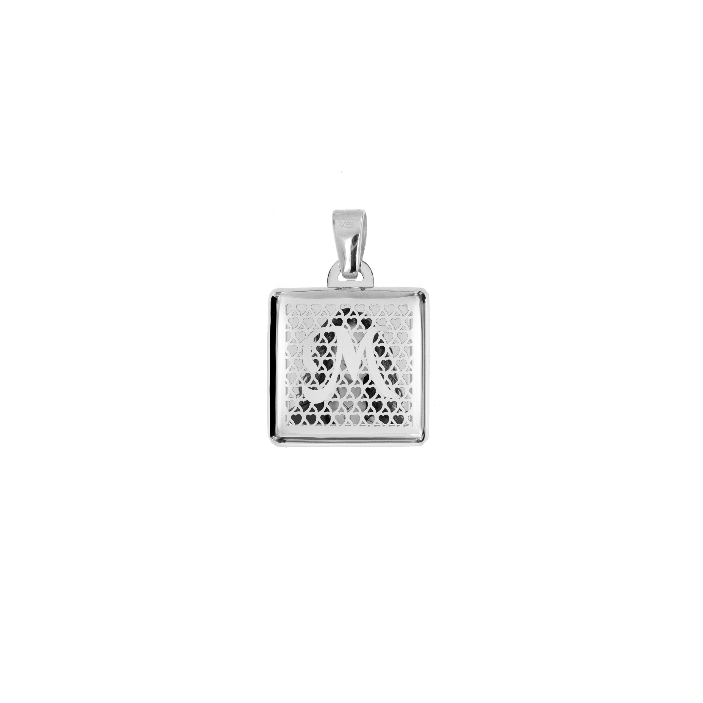 Medaglia Portafoto Quadrata in Oro 9kt - Traforata con Iniziale