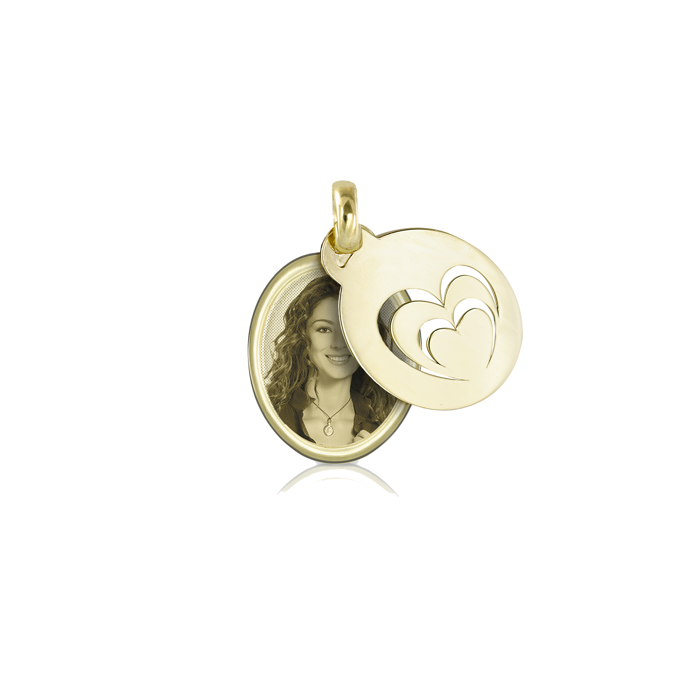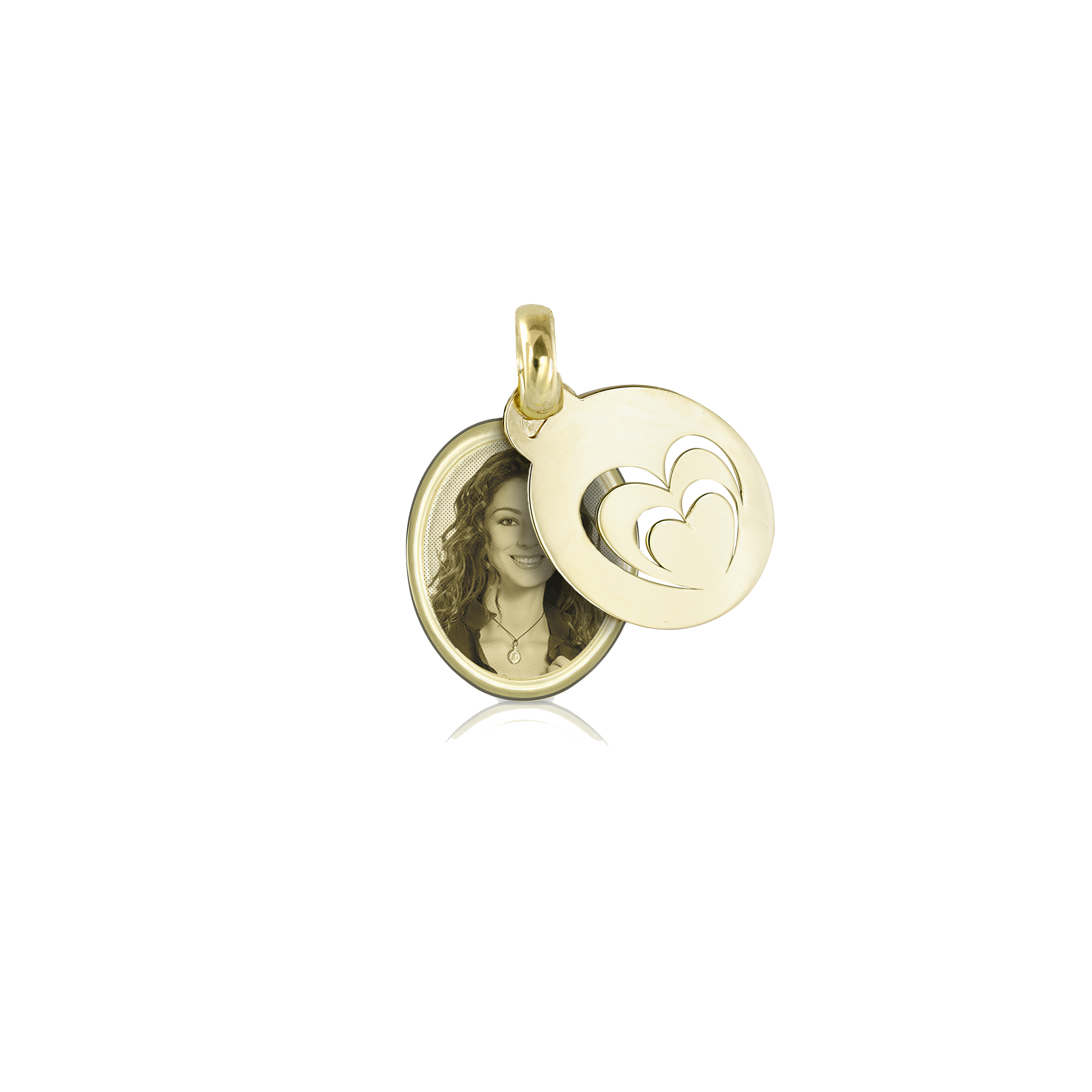 Un elegante ovale in oro 18kt, decorato con cuori traforati che riflettono l’intensità dei sentimenti più puri. Al suo interno, una foto incisa cattura un istante indimenticabile, trasformando ogni ricordo in un tesoro da custodire. Leggera e raffinata, è il simbolo di un amore che non svanisce. Un gioiello che unisce bellezza e affetto, perfetto per chi vuole portare sempre con sé un pezzo di cuore.
