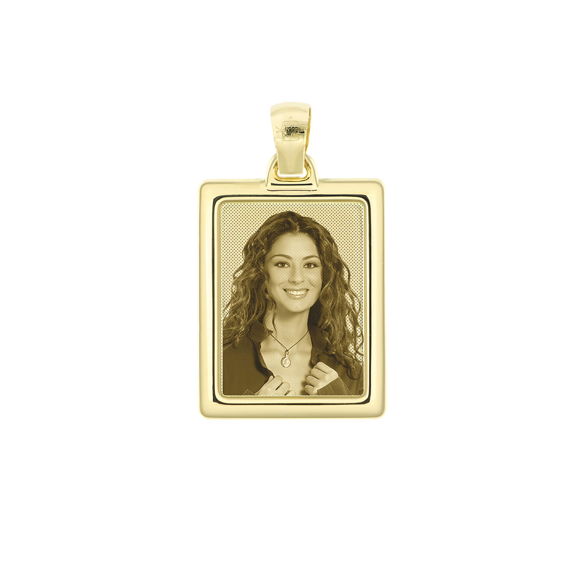 Porta sempre con te un’emozione indelebile con la nostra medaglia con foto incisa in oro 18kt. La cornice rettangolare bombata dona eleganza e profondità, valorizzando ogni dettaglio del tuo ricordo più caro. Un gioiello unico, simbolo di affetto e legame eterno.