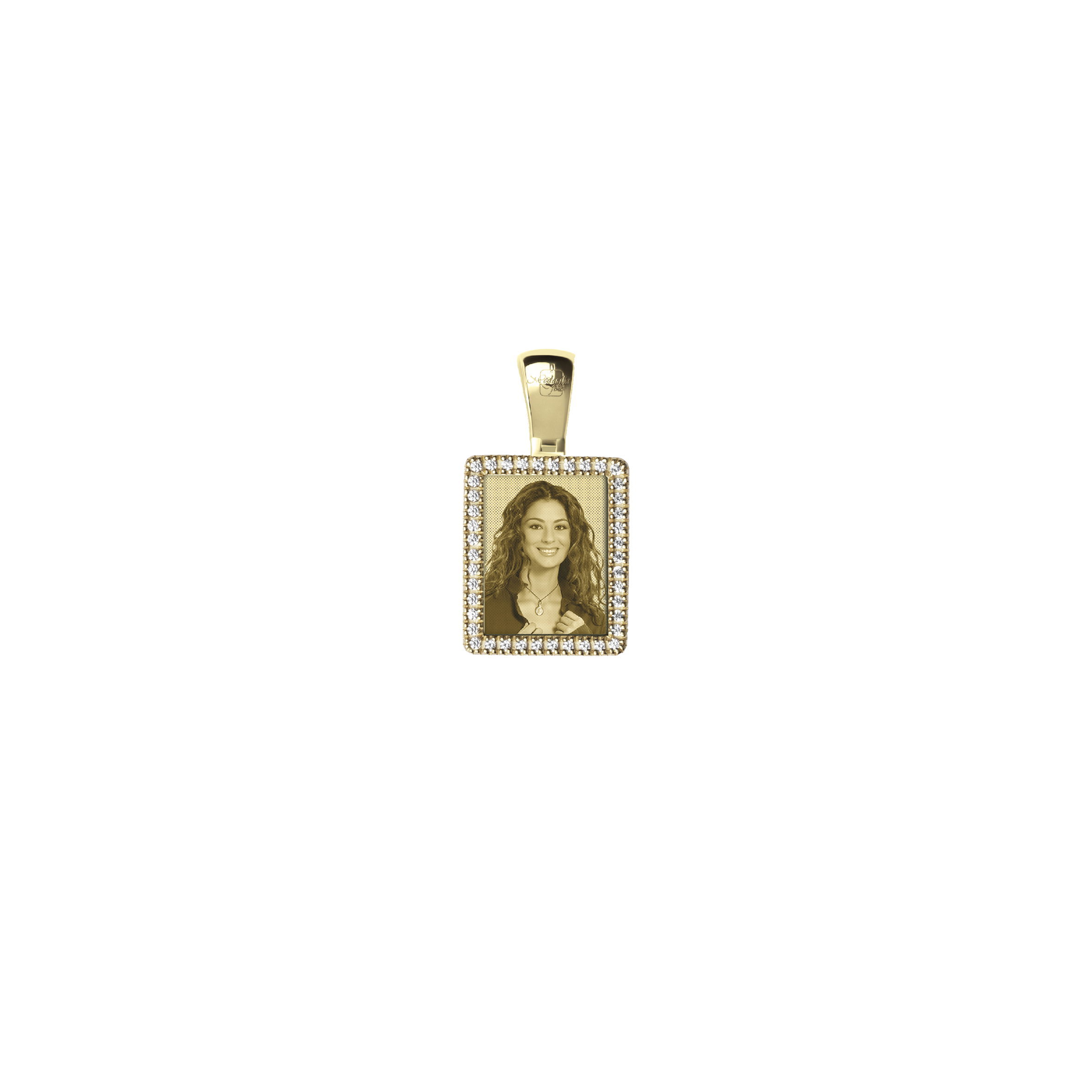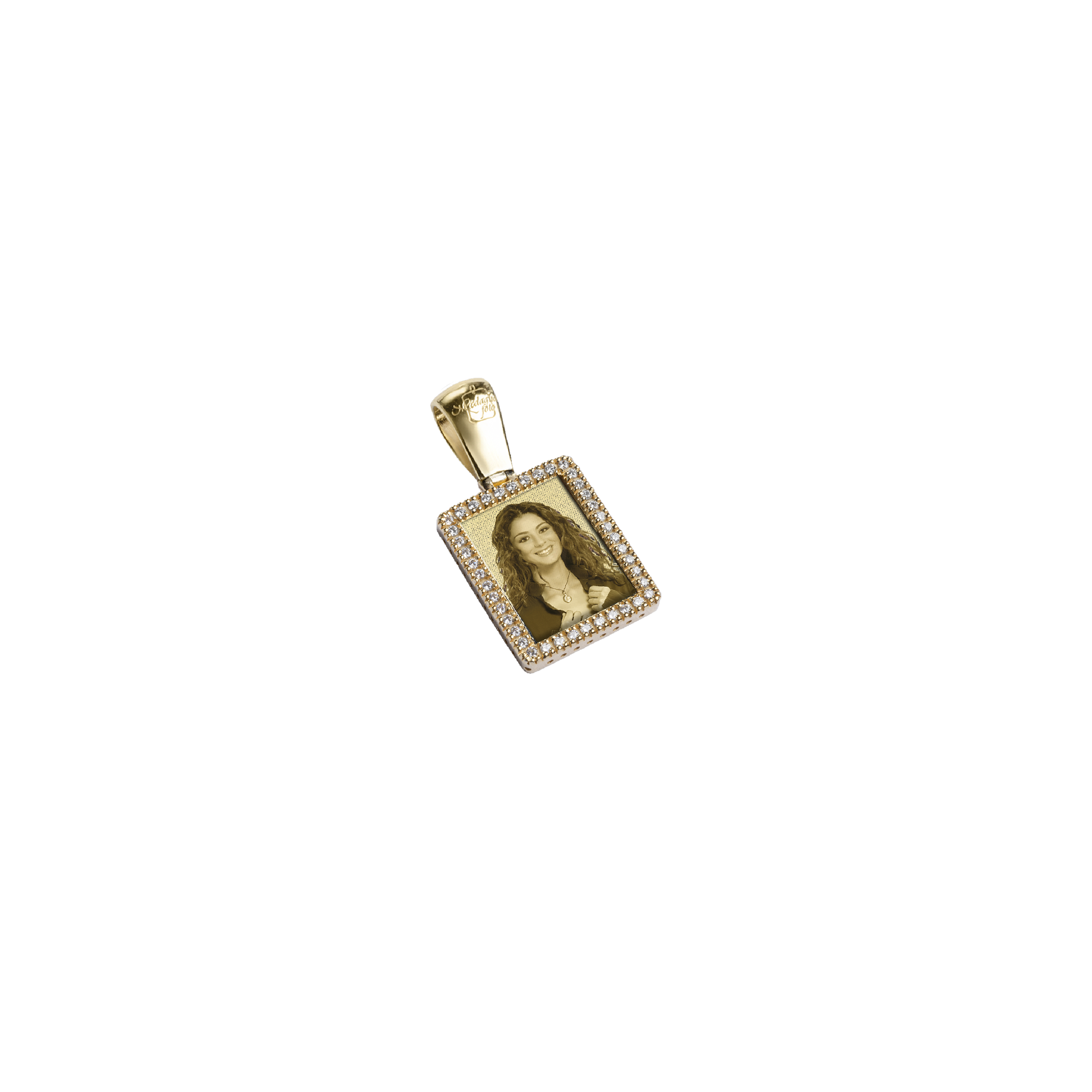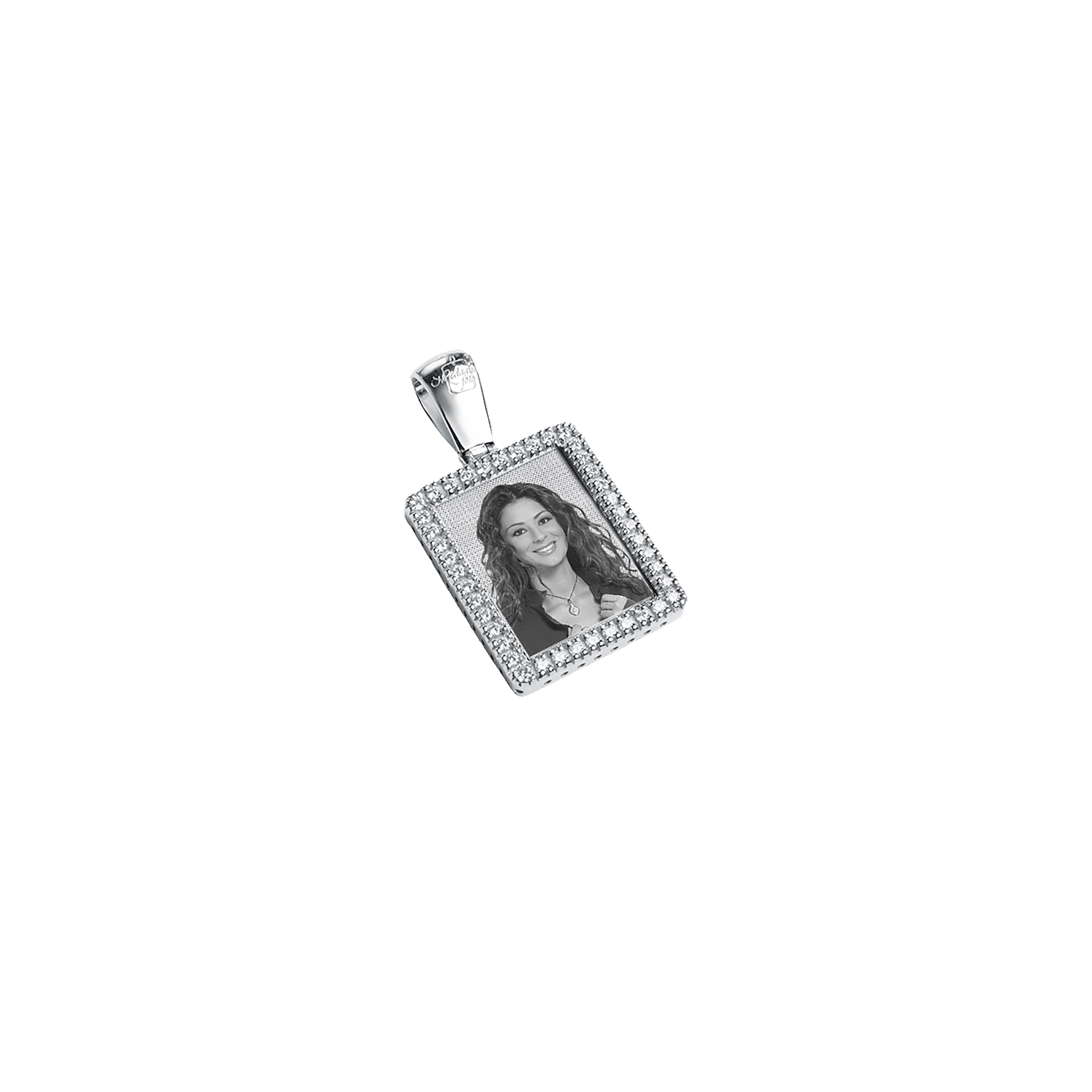 Un elegante rettangolo di oro 9kt, impreziosito da diamanti preziosi, racchiude un ricordo indelebile. La foto incisa al suo interno rende ogni dettaglio unico e personale, catturando l’emozione di un istante speciale. La lucentezza dell'oro e il bagliore dei diamanti ne esaltano la bellezza, creando un gioiello che parla al cuore. Un simbolo di affetto eterno, da custodire per sempre.