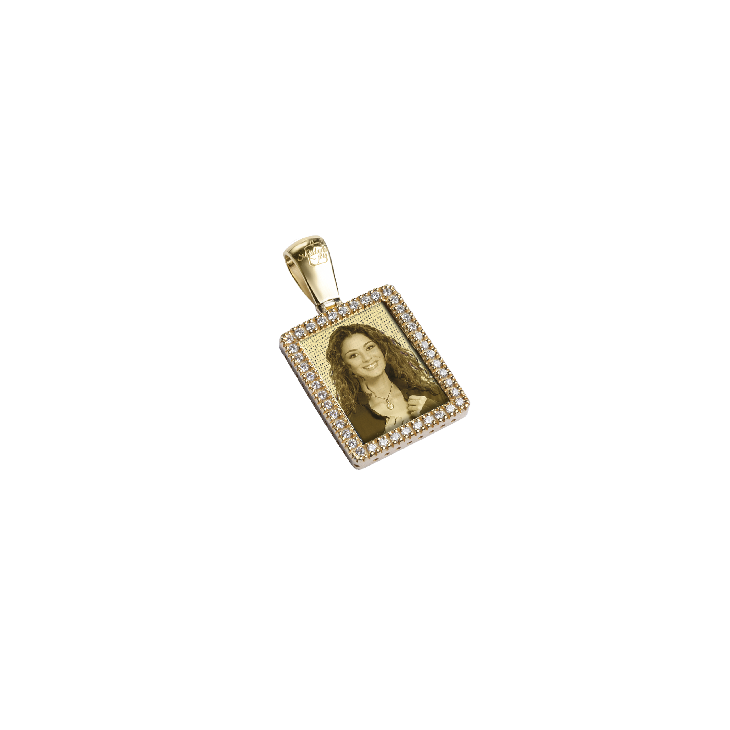 Medaglia Rettangolare in Oro 9kt - Cornice con Diamanti