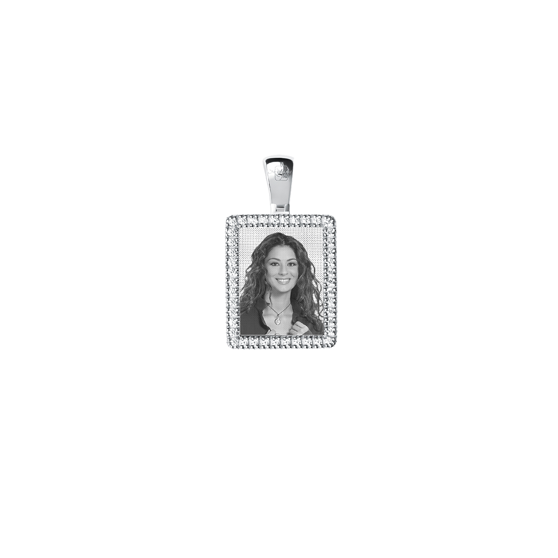 Un elegante rettangolo di oro 9kt, impreziosito da zirconi scintillanti, racchiude un ricordo indelebile. La foto incisa al suo interno rende ogni dettaglio unico e personale, catturando l’emozione di un istante speciale. La lucentezza dell'oro e il bagliore degli zirconi ne esaltano la bellezza, creando un gioiello che parla al cuore. Un simbolo di affetto eterno, da custodire per sempre.