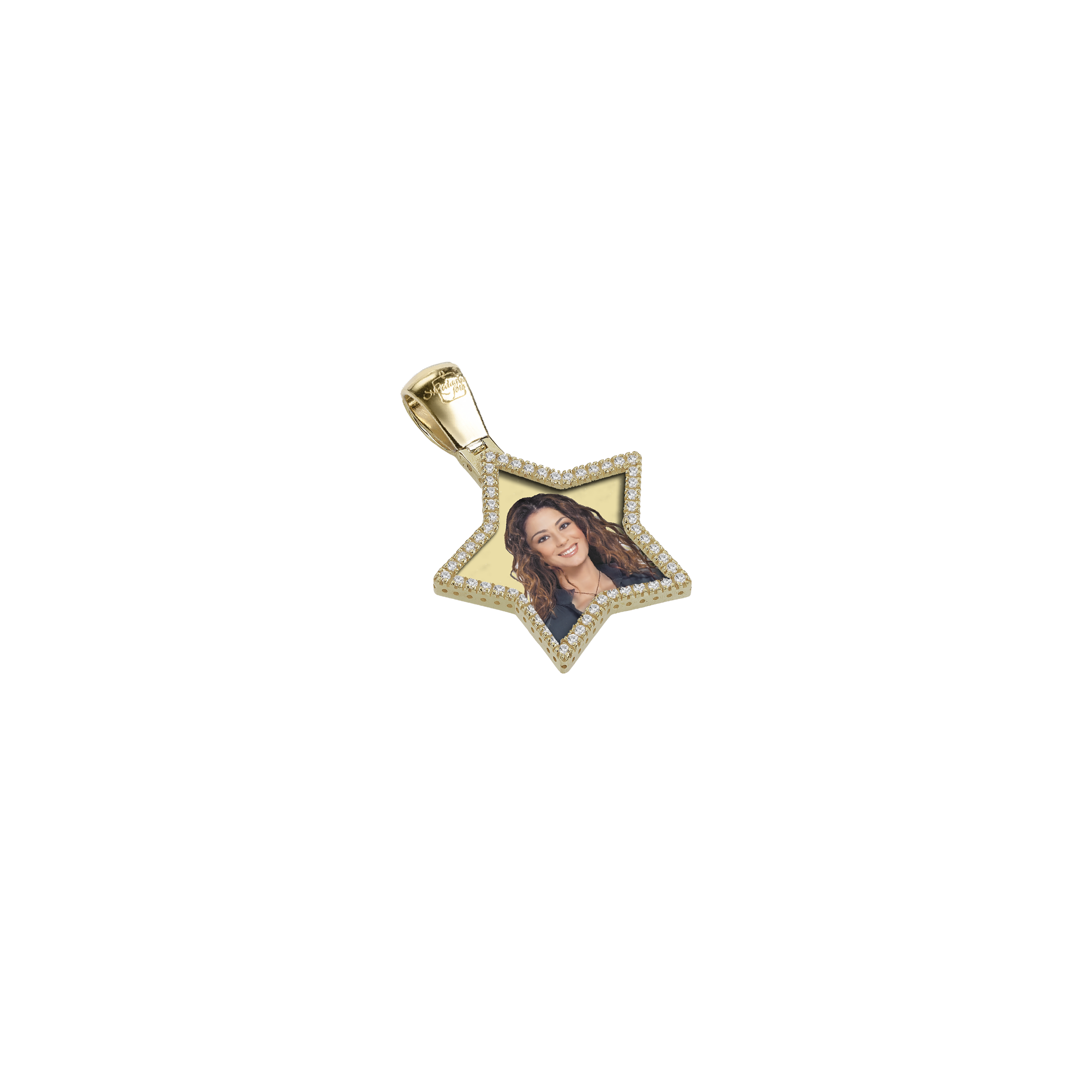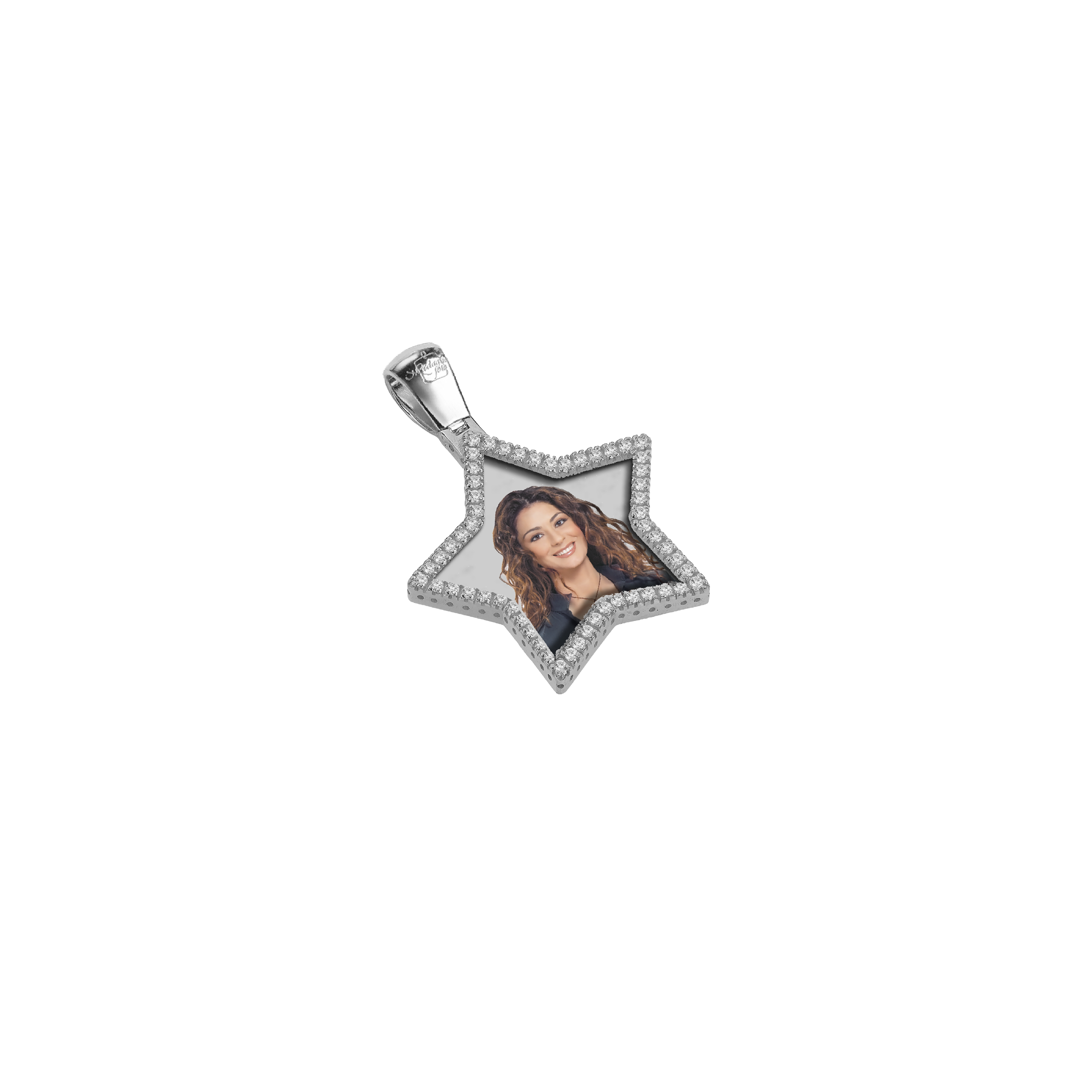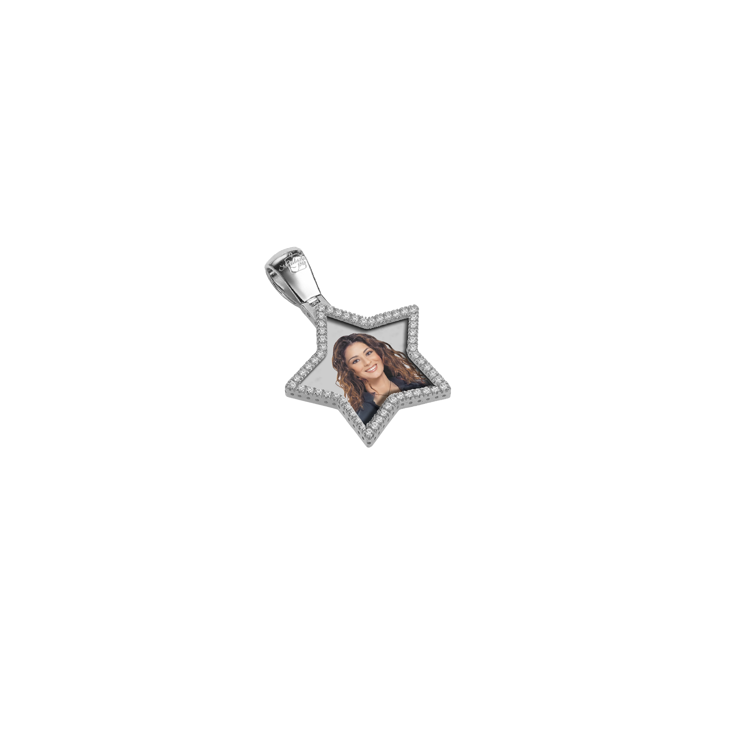 Questa medaglia in argento, dalla forma a stella e arricchita da zirconi scintillanti, brilla di una luce unica e inconfondibile. Al suo interno, una foto rende questo gioiello ancora più speciale, trasformando un ricordo in un tesoro da custodire per sempre. La luminosità dell'argento e il riflesso degli zirconi ne esaltano la bellezza, regalando eleganza e personalità. Un simbolo di affetto che illumina il cuore e dura nel tempo.