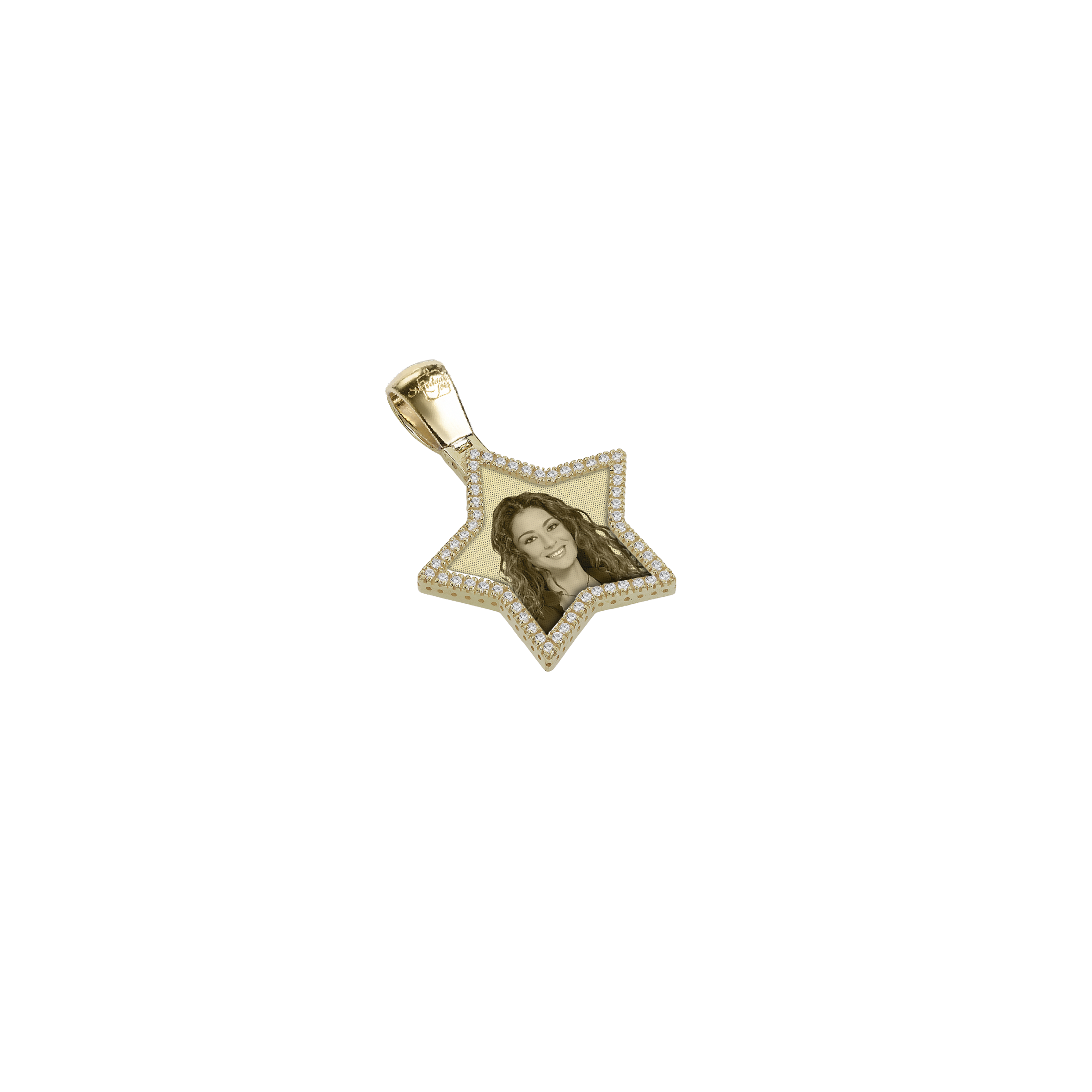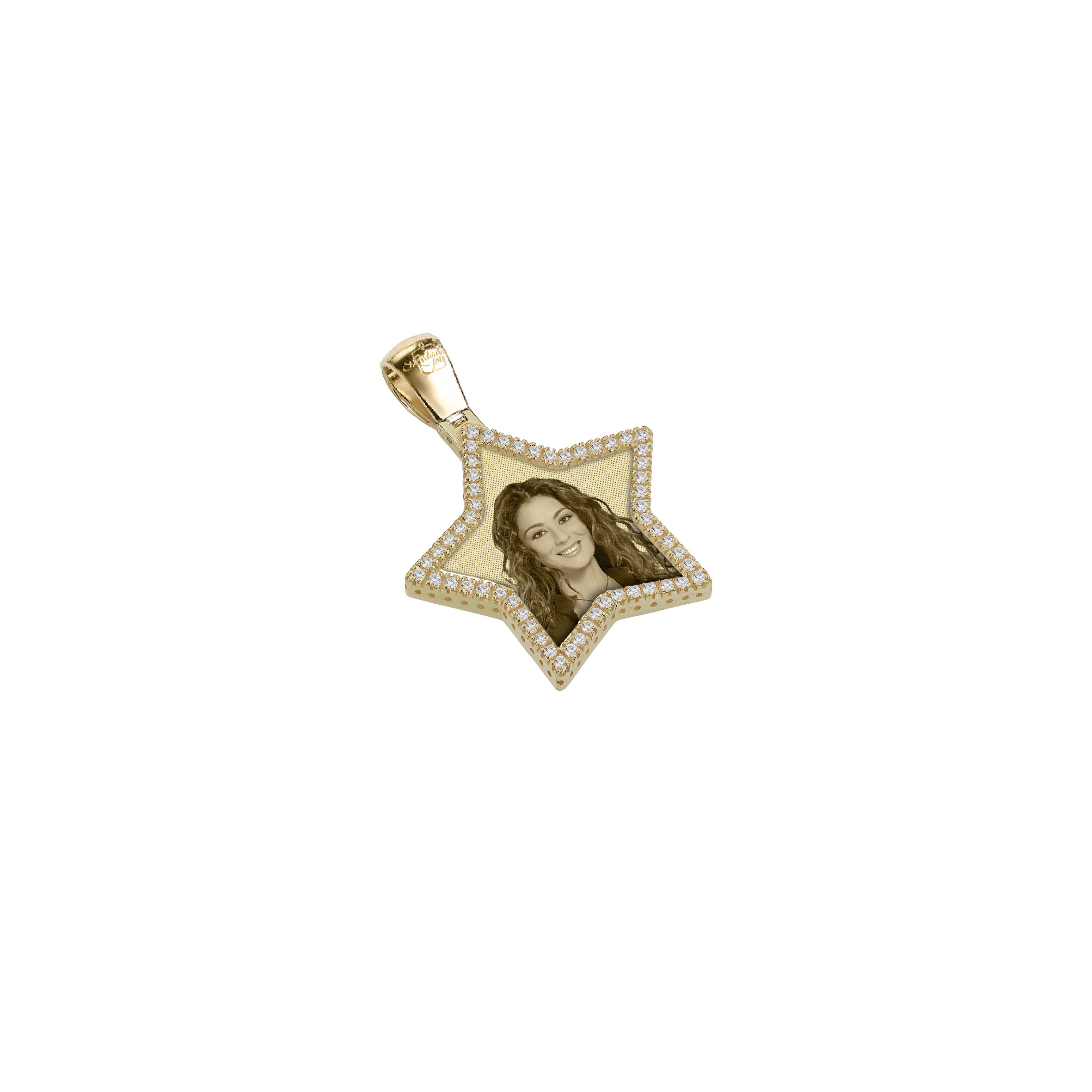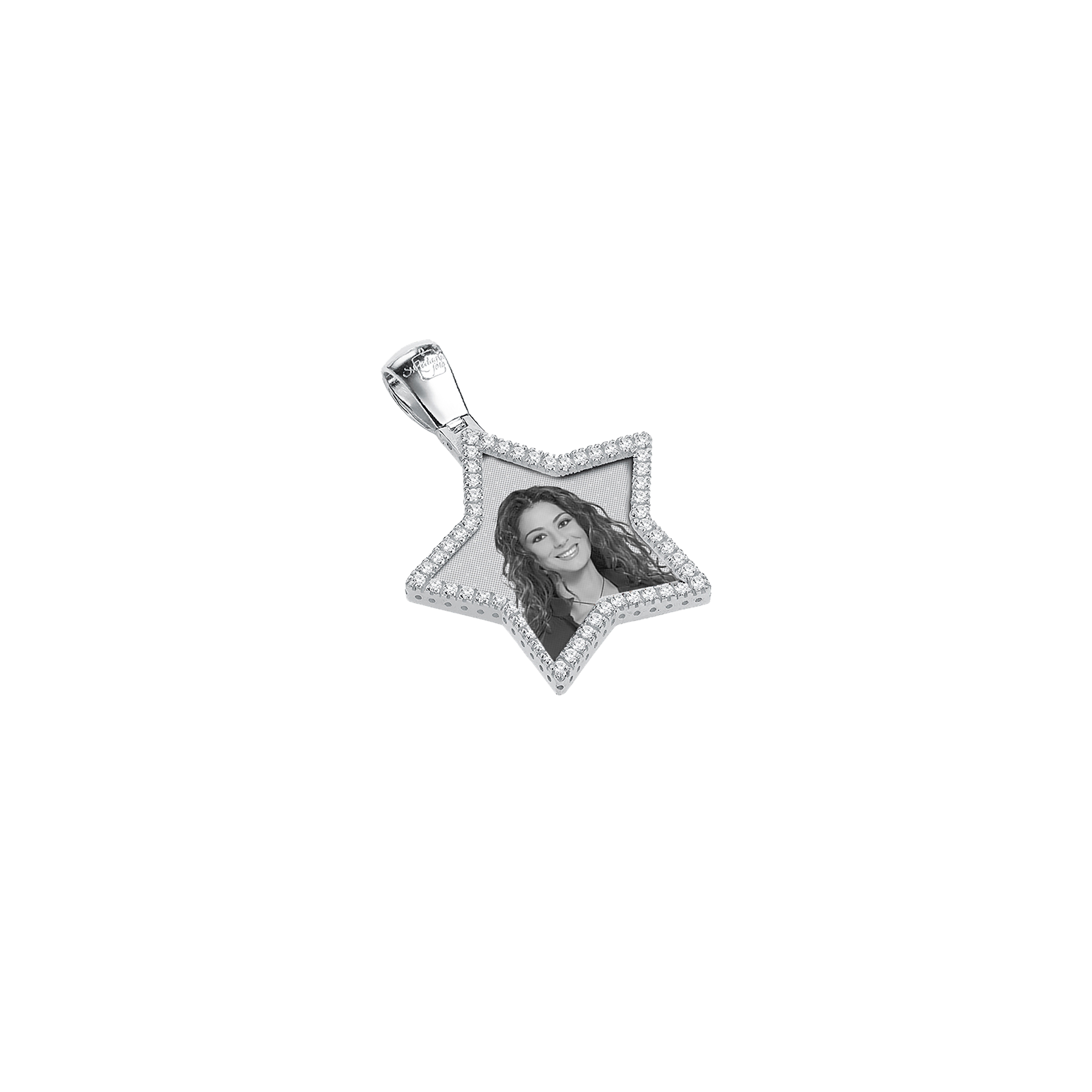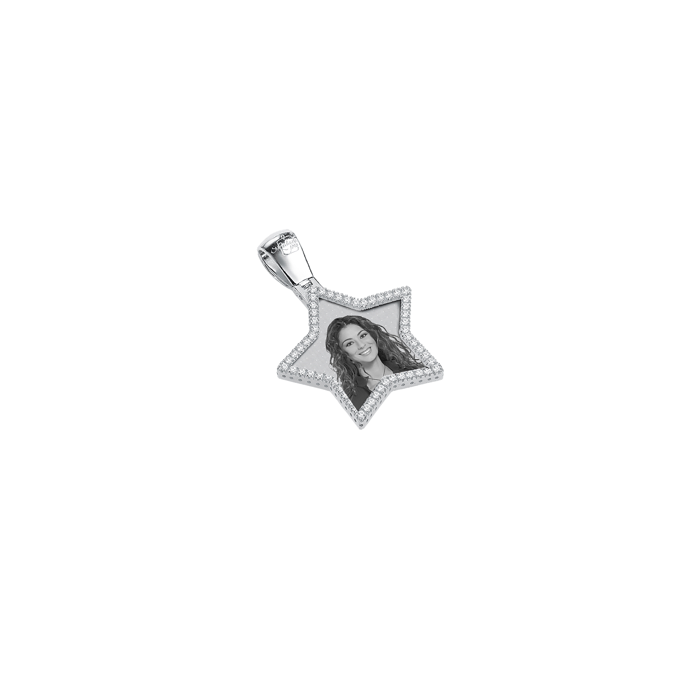 Questa medaglia in argento a forma di stella è un tributo alla bellezza e ai ricordi più cari. I zirconi che la circondano riflettono la luce, esaltando la sua eleganza. La foto incisa al centro conserva un istante unico, trasformandolo in un tesoro eterno. Un simbolo di affetto profondo, perfetto per un regalo che parla al cuore. Un gioiello che brilla di significato e di emozione.