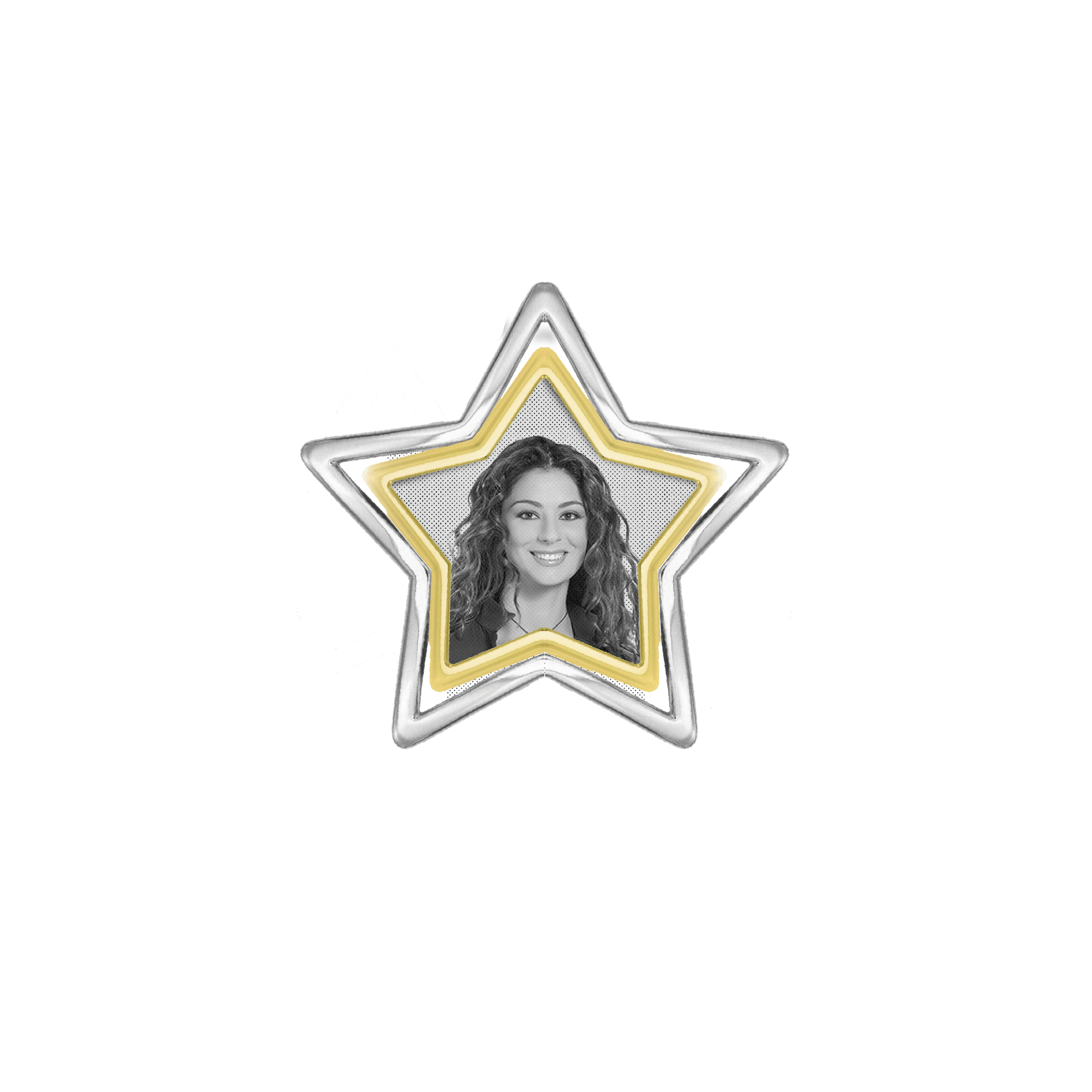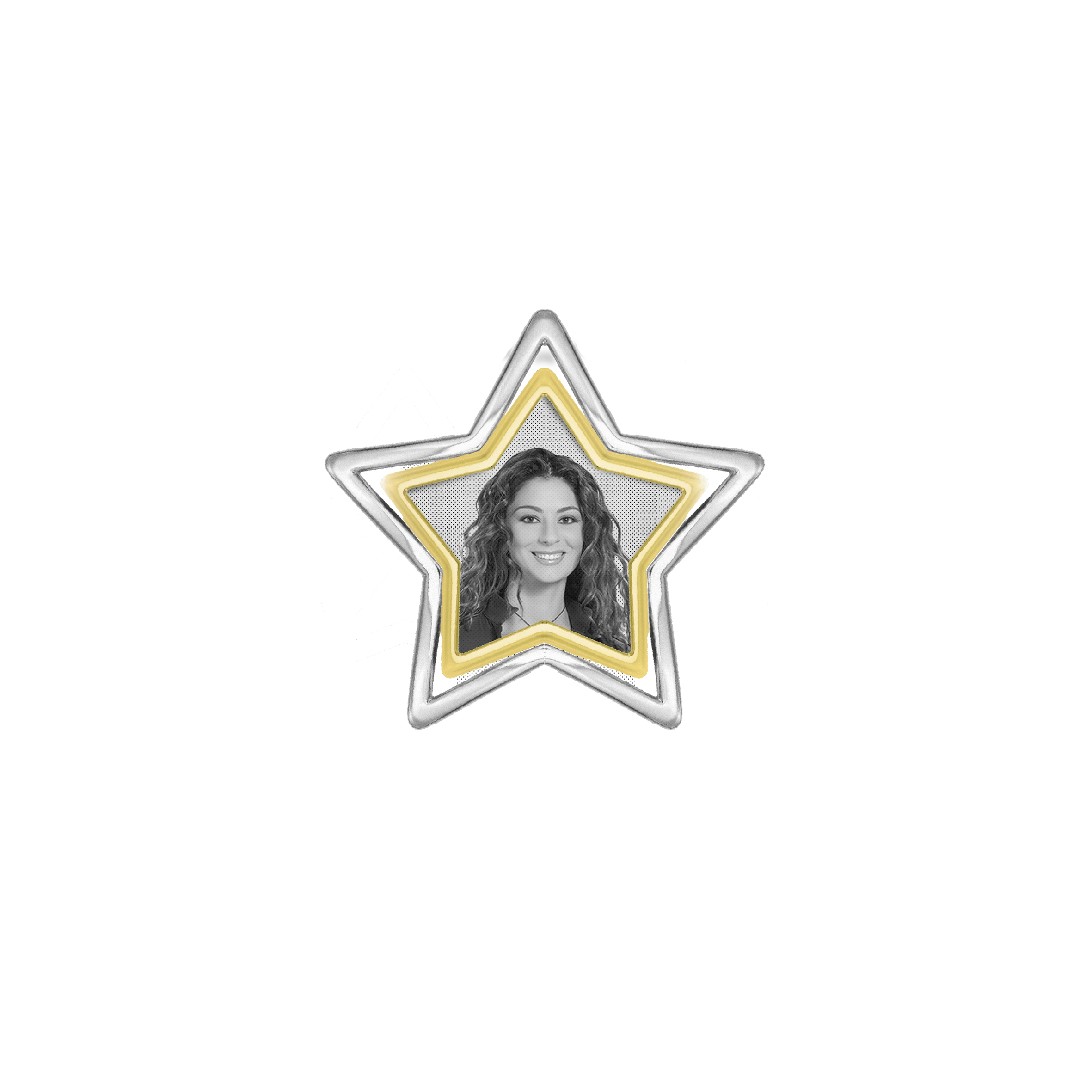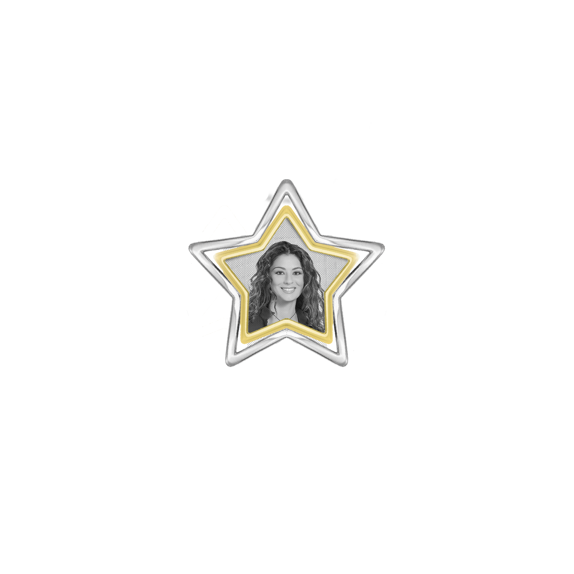 Una stella che brilla con la luce dei tuoi ricordi più cari. La doppia cornice bicolore dona eleganza e profondità, esaltando ogni dettaglio. Al centro, una foto incisa con cura rende eterno un momento speciale. Un gioiello unico, che racconta una storia da portare sempre sul cuore. Perfetto per chi vuole custodire un'emozione senza tempo.