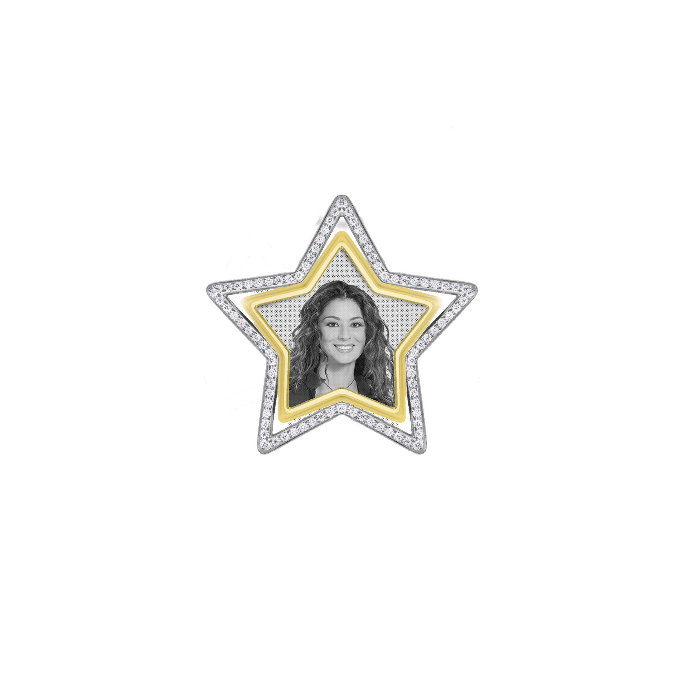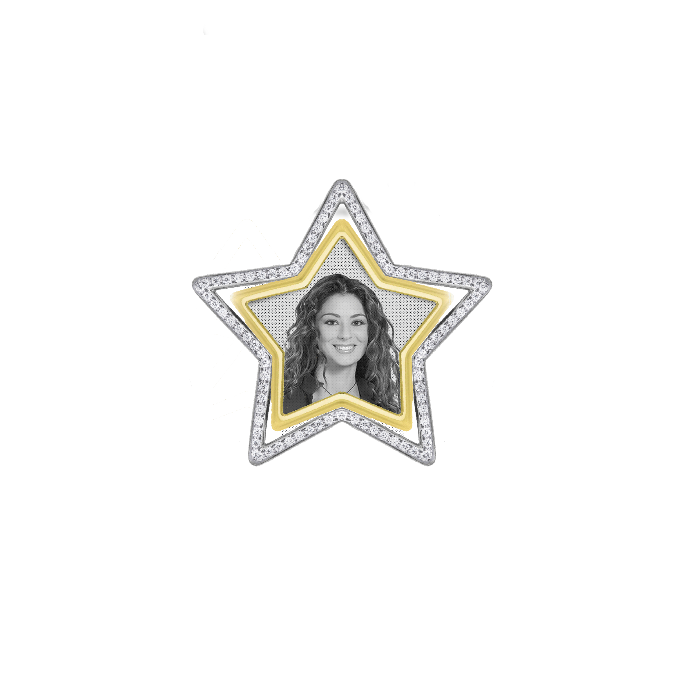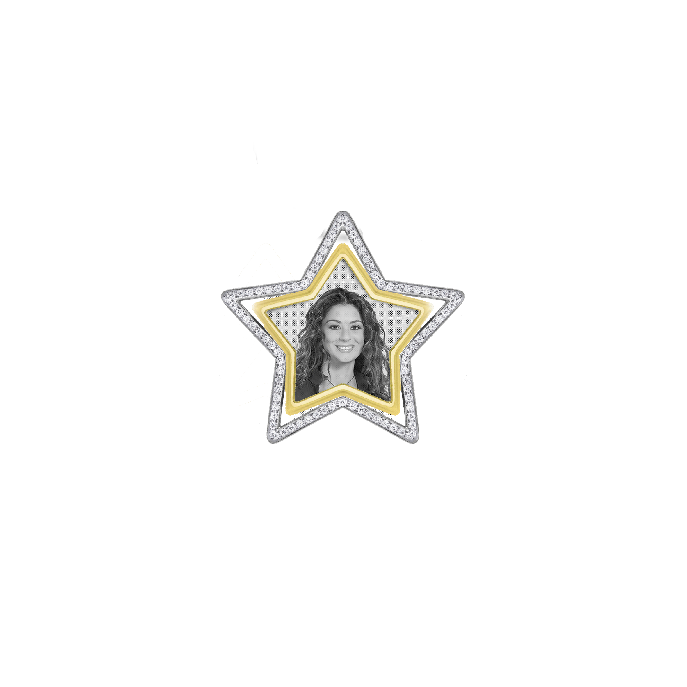 Una stella che racchiude la magia di un ricordo prezioso. La doppia cornice bicolore illumina la forma con eleganza, mentre i suoi zirconi donano luce e raffinatezza. Al centro, la foto incisa custodisce per sempre un’emozione unica. Un gioiello che parla al cuore e celebra ciò che conta davvero. Perfetto per portare con sé chi si ama, ogni giorno.