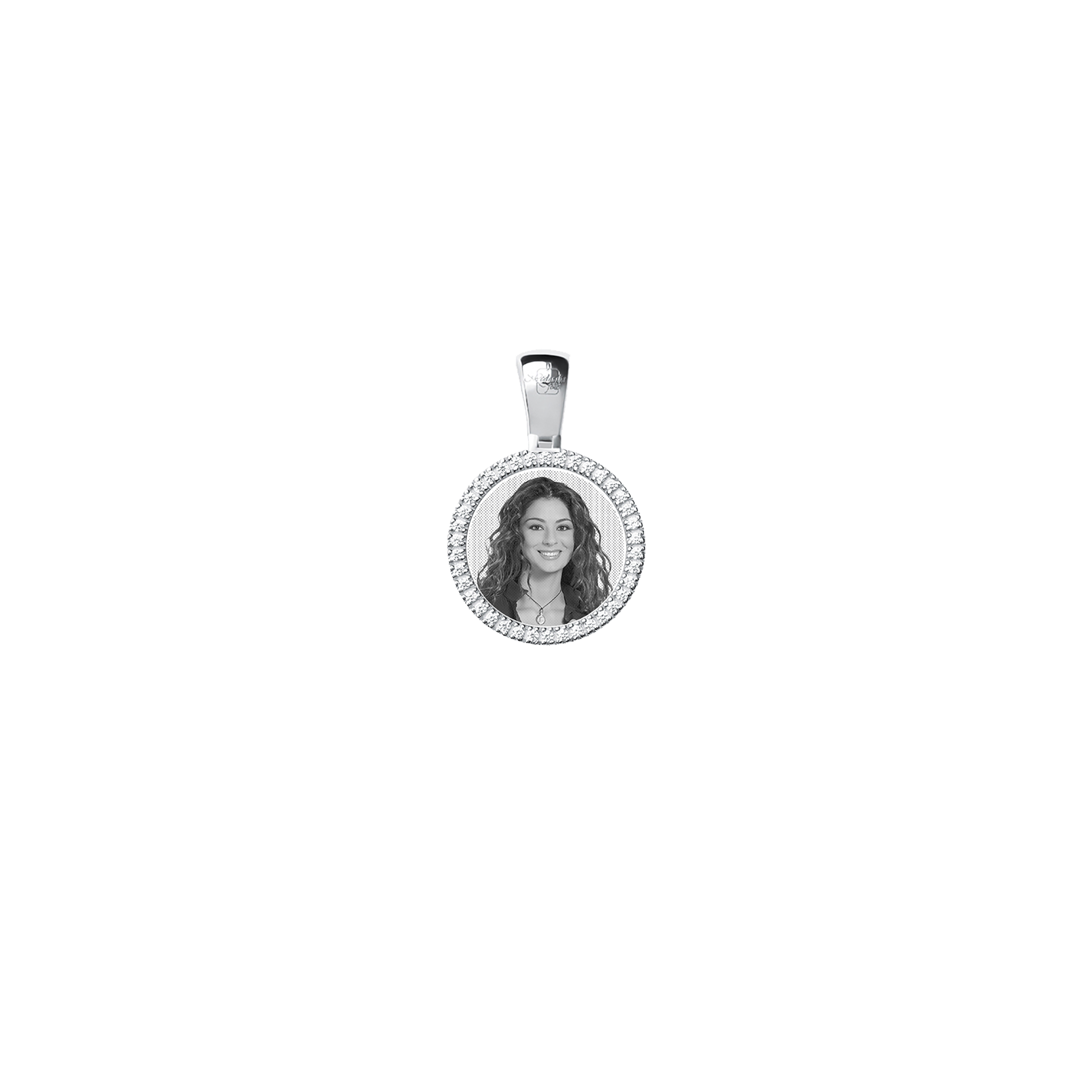 Medaglia Tonda in Oro 18kt - Cornice con Zirconi