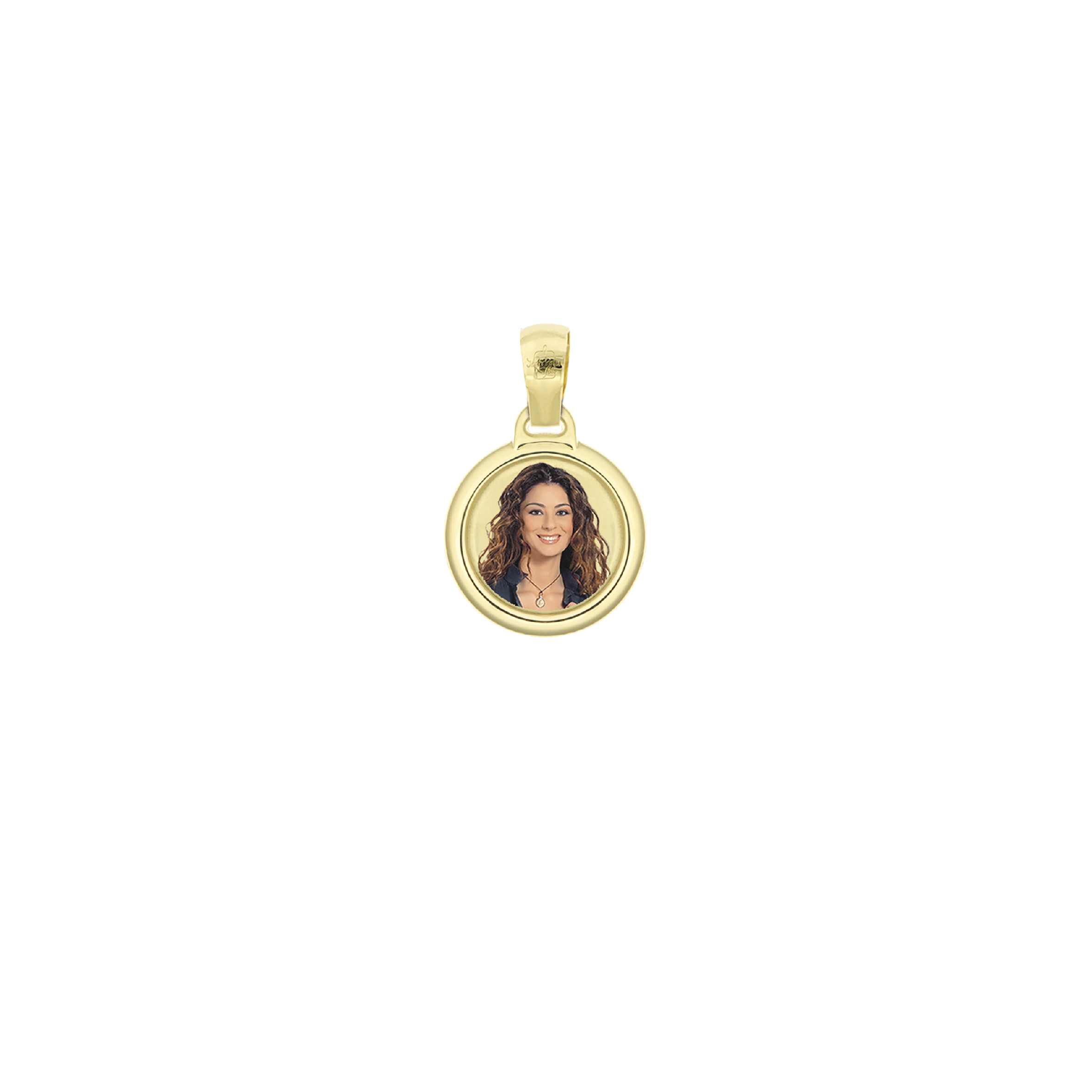 Rendi eterno un ricordo speciale con la medaglia con foto in oro 9kt. La sua cornice tonda bombata avvolge l’immagine con armonia e luminosità, esaltandone ogni dettaglio. Un gioiello prezioso che custodisce emozioni, da portare sempre vicino al cuore.
