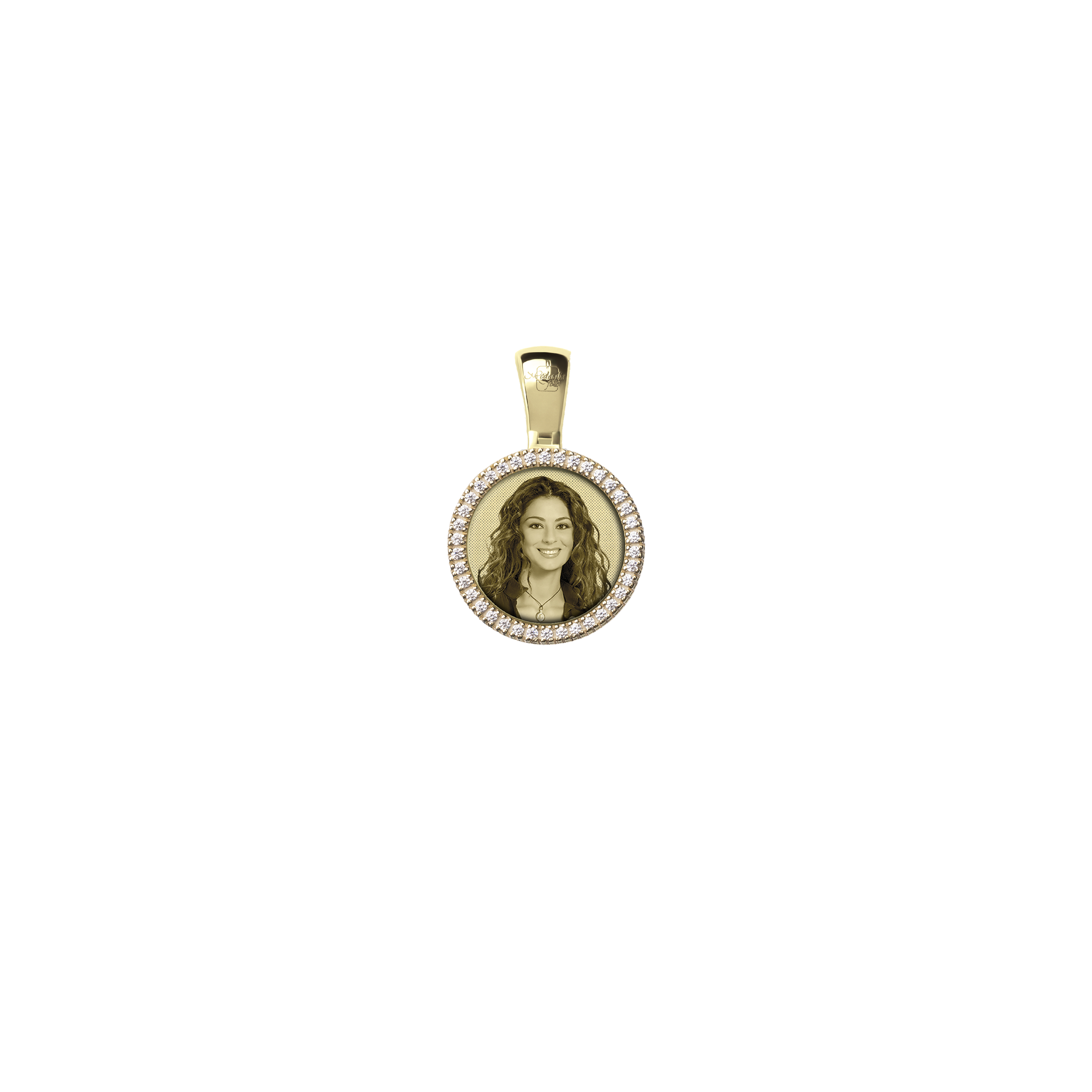 Medaglia Tonda in Oro 9kt - Cornice con Zirconi