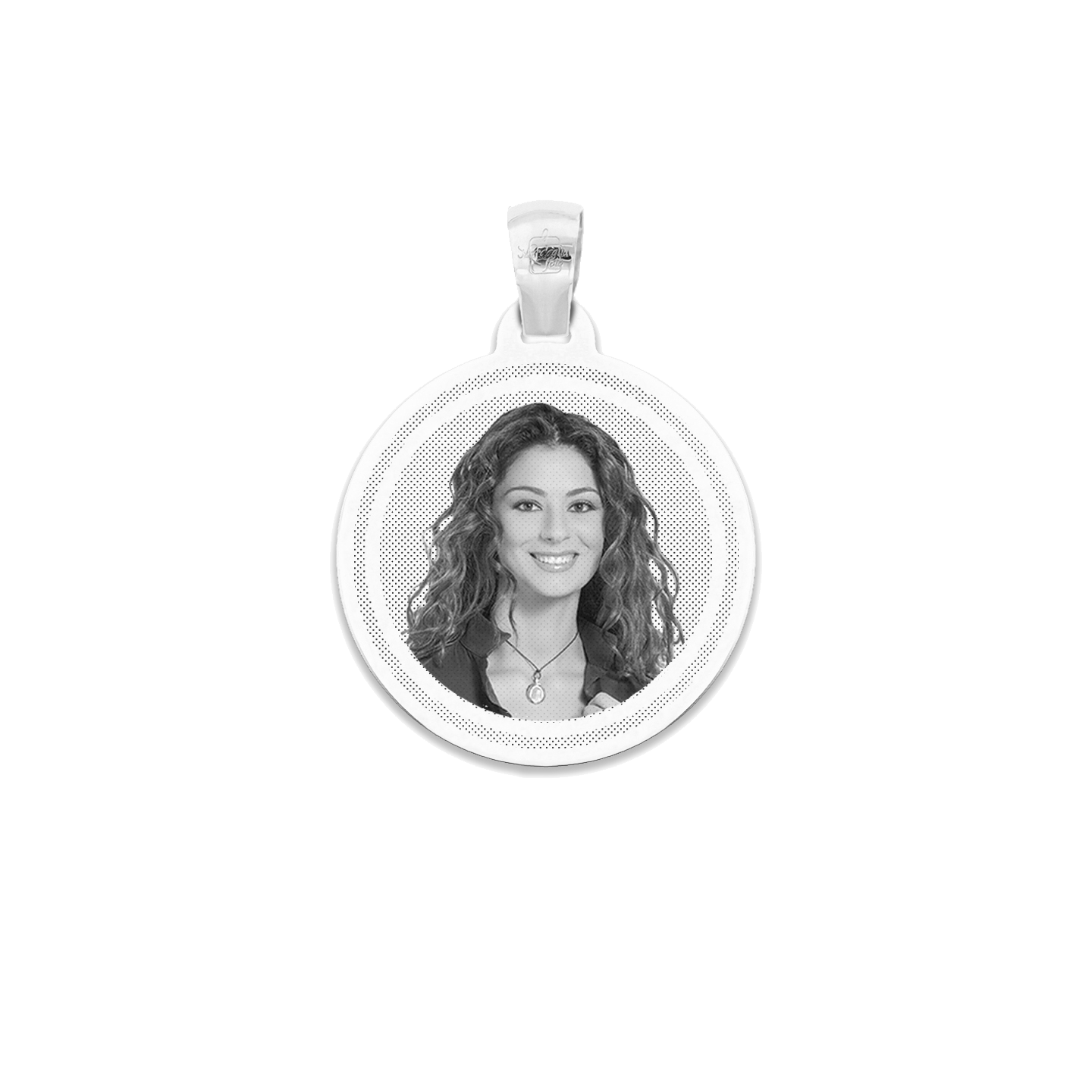 Un prezioso frammento di eternità, dove i ricordi prendono forma nell’oro. La foto incisa con delicatezza sulla superficie luminosa cattura un’emozione senza tempo, racchiusa da una cornice incisa che ne esalta la purezza. Un gioiello unico, simbolo d’amore e memoria, da custodire vicino al cuore.