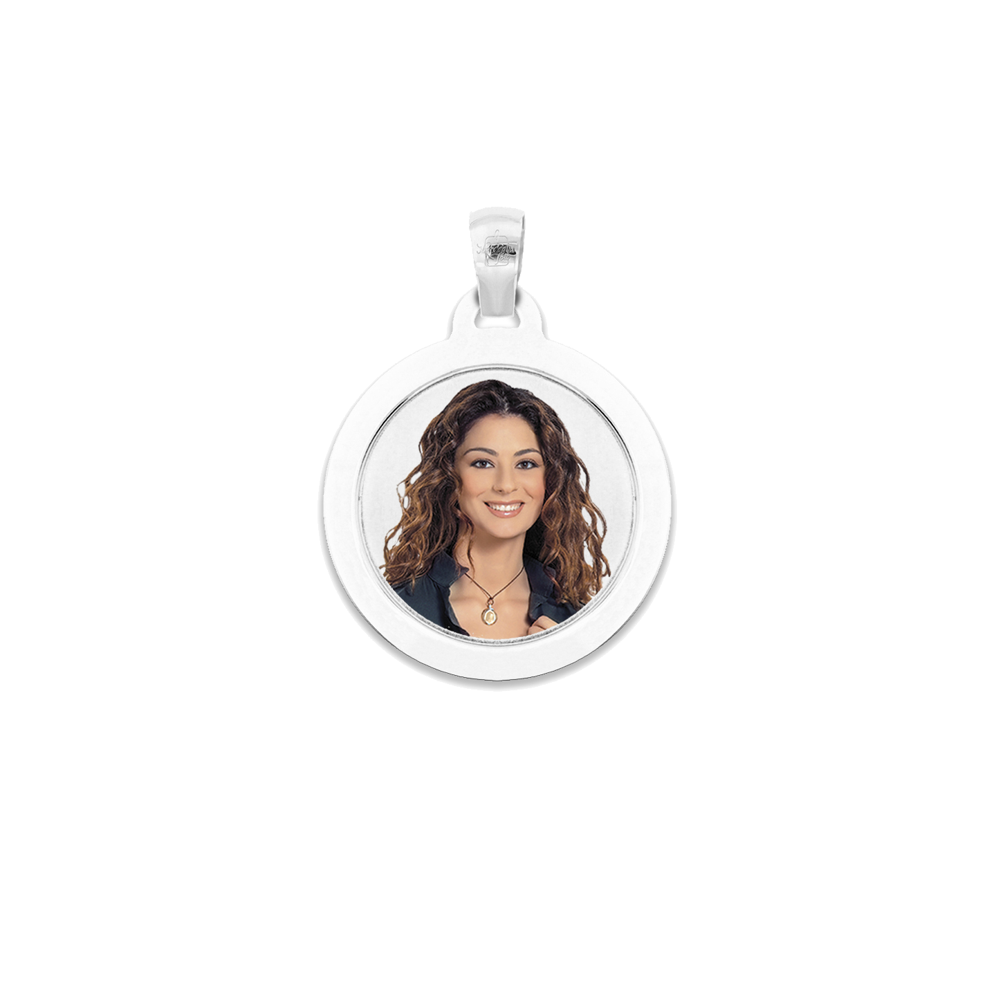 Un ricordo prezioso da portare sempre con te. Questa splendida medaglia tonda in oro 9kt, con la sua cornice piatta ed elegante, incornicia i tuoi momenti più cari. Al centro, una foto che racconta una storia, un’emozione, un legame eterno.
